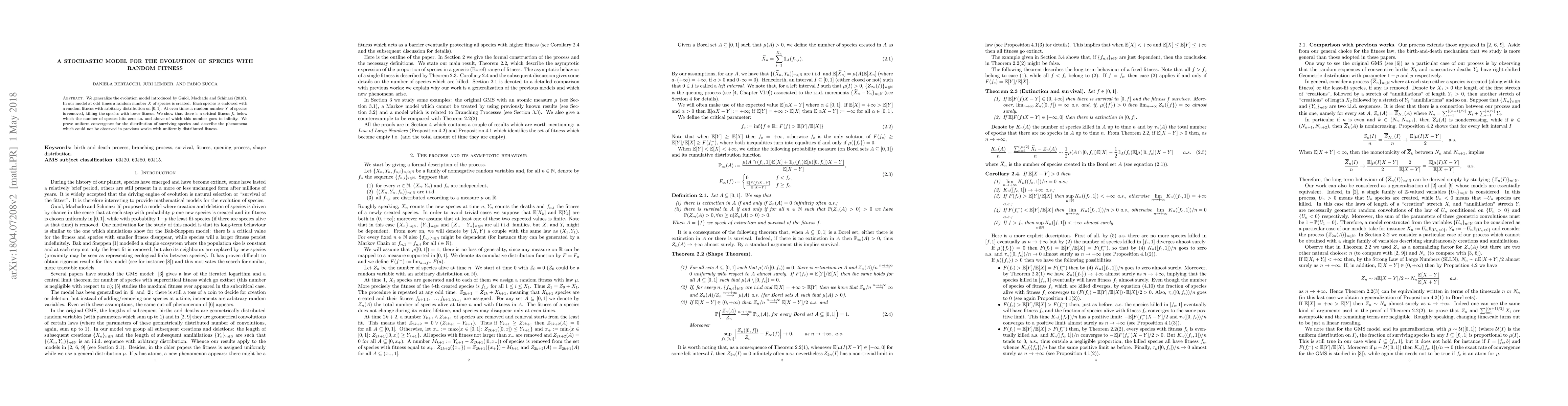 We generalize the evolution model introduced by Guiol, Machado and Schinazi (2010). In our model at odd times a random number X of species is created. Each species is endowed with a random fitness with arbitrary distribution on $[0, 1]$. At even times a random number Y of species is removed, killing the species with lower fitness. We show that there is a critical fitness $f_c$ below which the number of species hits zero i.o. and above of which this number goes to infinity. We prove uniform convergence for the distribution of surviving species and describe the phenomena which could not be observed in previous works with uniformly distributed fitness.