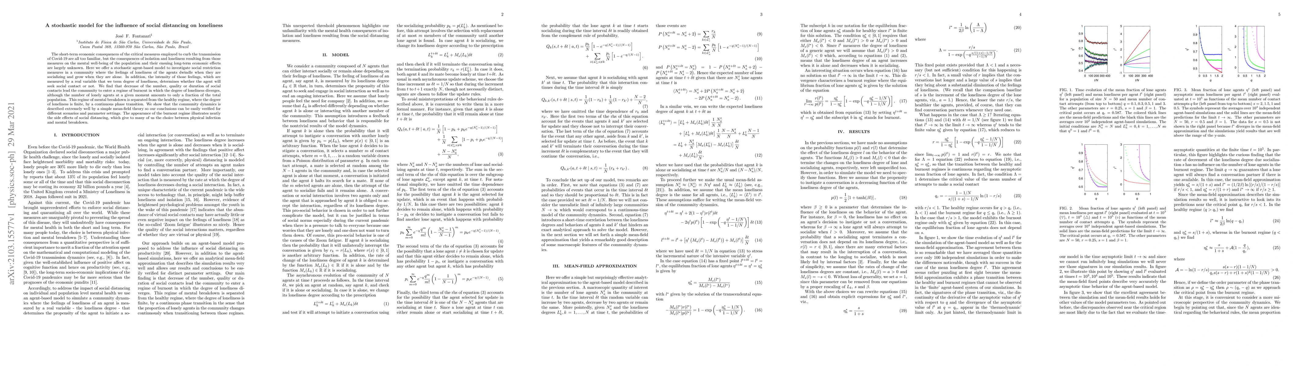 A stochastic model suggests that social distancing measures can lead to a regime of mental breakdown characterized by increased loneliness, even among those not infected, highlighting the risks of isolation during public health crises.