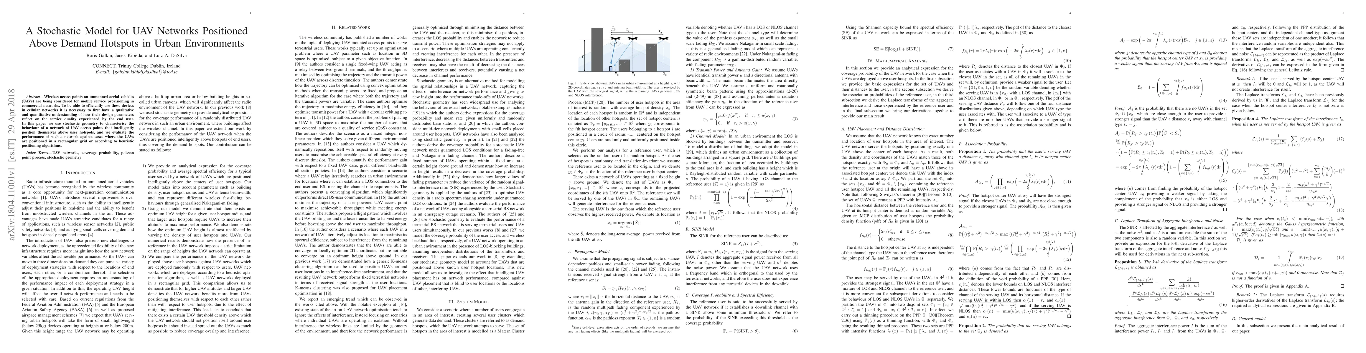 Wireless access points on unmanned aerial vehicles (UAVs) are being considered for mobile service provisioning in commercial networks. To be able to efficiently use these devices in cellular networks it is necessary to first have a qualitative and quantitative understanding of how their design parameters reflect on the service quality experienced by the end user. In this paper we use stochastic geometry to characterise the behaviour of a network of UAV access points that intelligently position themselves above user hotspots, and we evaluate the performance of such a network against cases where the UAVs are positioned in a rectangular grid or according to heuristic positioning algorithms.