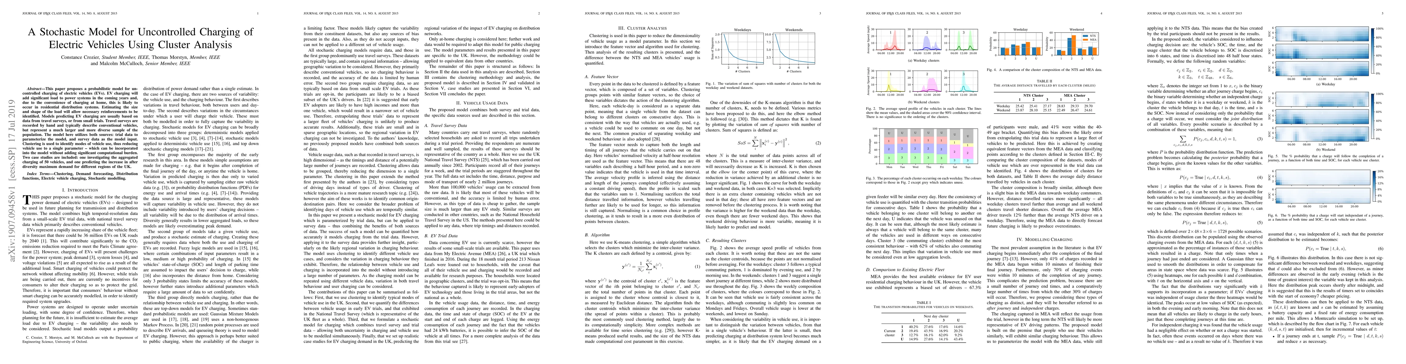 This paper proposes a probabilistic model for uncontrolled charging of electric vehicles (EVs). EV charging will add significant load to power systems in the coming years and, due to the convenience of charging at home, this is likely to occur in residential distribution systems. Estimating the size and shape of the load will allow necessary reinforcements to be identified. Models predicting EV charging are usually based on data from travel surveys, or from small trials. Travel surveys are recorded by hand and typically describe conventional vehicles, but represent a much larger and more diverse sample of the population. The model here utilizes both sources: trial data to parameterize the model, and survey data as the model input. Clustering is used to identify modes of vehicle use, thus reducing vehicle use to a single parameter -- which can be incorporated into the model without adding significant computational burden. Two case studies are included: one investigating the aggregated charging of 50 vehicles, and one predicting the increase in after diversity maximum demand for different regions of the UK.