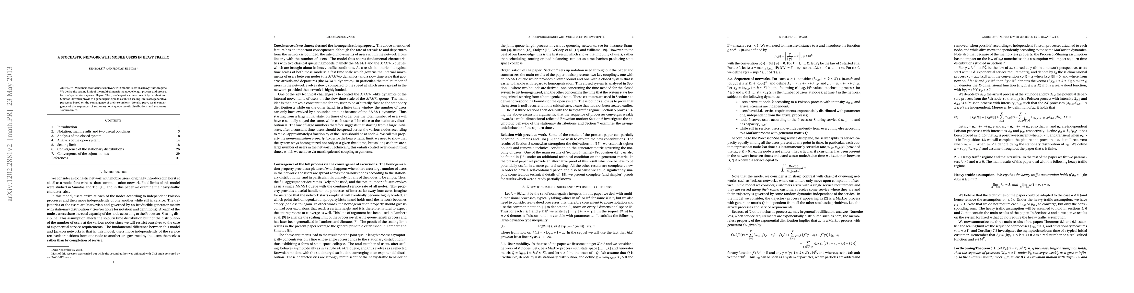 We consider a stochastic network with mobile users in a heavy-traffic regime. We derive the scaling limit of the multi-dimensional queue length process and prove a form of spatial state space collapse. The proof exploits a recent result by Lambert and Simatos which provides a general principle to establish scaling limits of regenerative processes based on the convergence of their excursions. We also prove weak convergence of the sequences of stationary joint queue length distributions and stationary sojourn times.