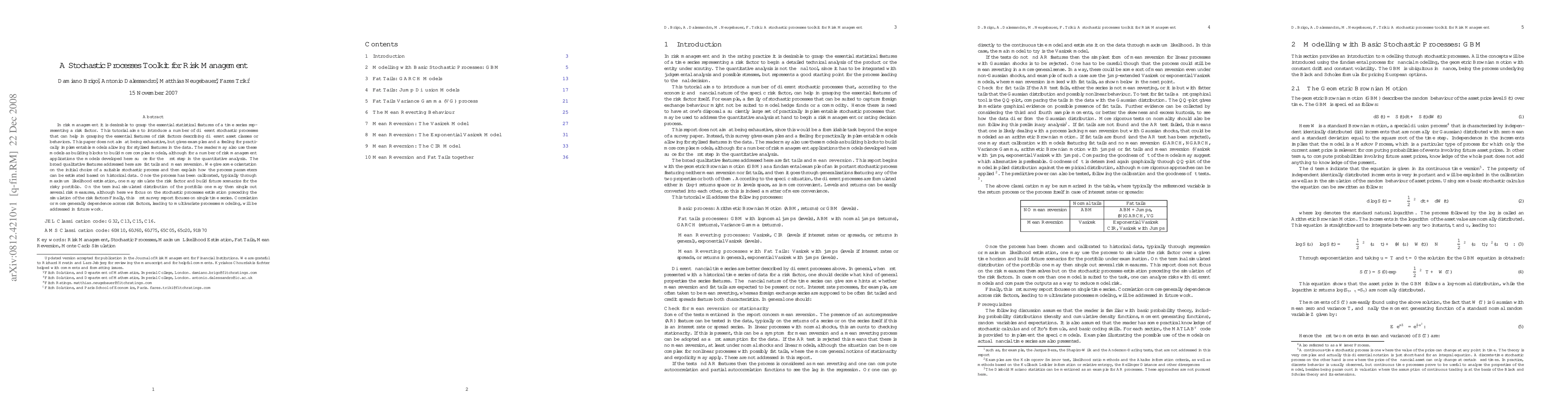 This paper introduces various stochastic processes for risk management, emphasizing statistical features like fat tails and mean reversion in time series data. It provides practical models for initial quantitative analysis and discusses parameter estimation and simulation for future risk scenarios.