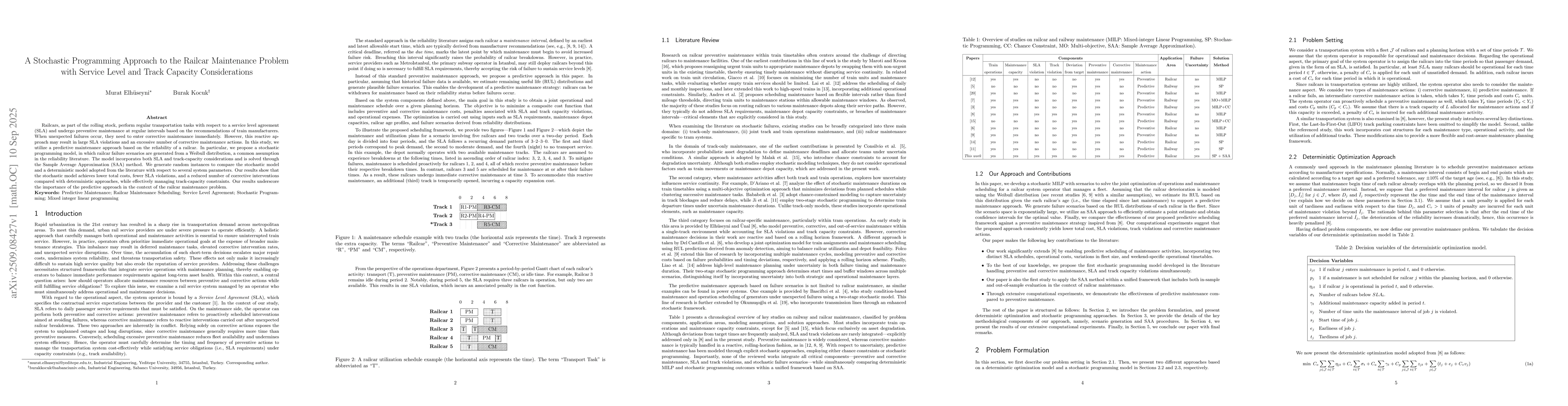 Railcars, as part of the rolling stock, perform regular transportation tasks with respect to a service level agreement (SLA) and undergo preventive maintenance at regular intervals based on the recommendations of train manufacturers. When unexpected failures occur, they need to enter corrective maintenance immediately. However, this reactive approach may result in large SLA violations and an excessive number of corrective maintenance actions. In this study, we utilize a predictive maintenance approach based on the reliability of a railcar. In particular, we propose a stochastic programming model, in which railcar failure scenarios are generated from a Weibull distribution, a common assumption in the reliability literature. The model incorporates both SLA and track-capacity considerations and is solved through the Sample Average Approximation (SAA) method. We generate random instances to compare the stochastic model and a deterministic model adopted from the literature with respect to several system parameters. Our results show that the stochastic model achieves lower total costs, fewer SLA violations, and a reduced number of corrective interventions compared with deterministic approaches, while effectively managing track-capacity constraints. Our results underscore the importance of the predictive approach in the context of the railcar maintenance problem.