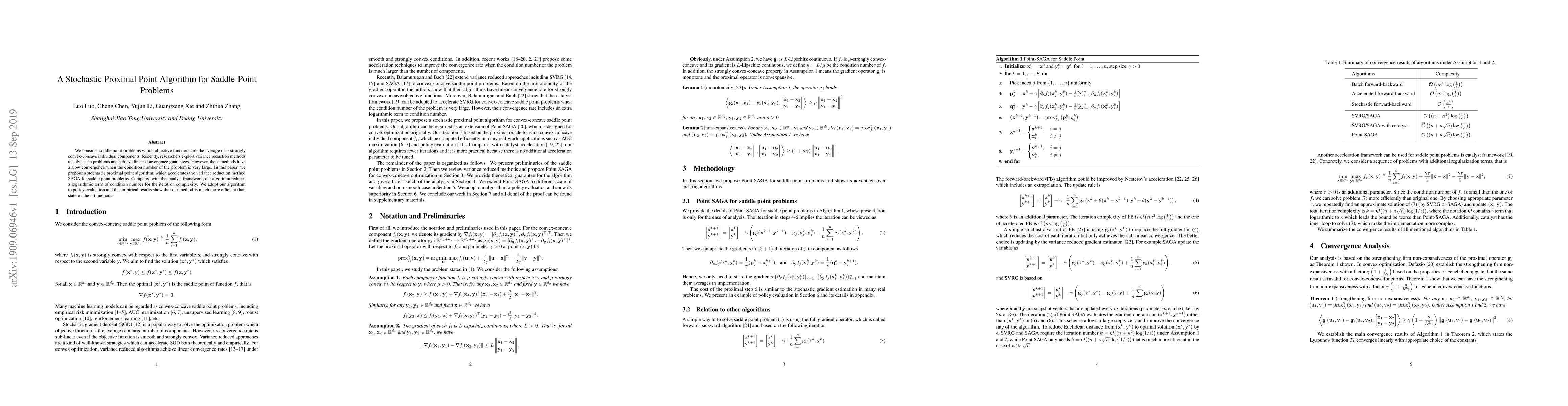 This paper introduces a stochastic proximal point algorithm to accelerate the SAGA variance reduction method for solving large-scale saddle-point problems. The proposed algorithm reduces the logarithmic term of the condition number in iteration complexity compared to existing methods, demonstrating superior efficiency in policy evaluation tasks.
