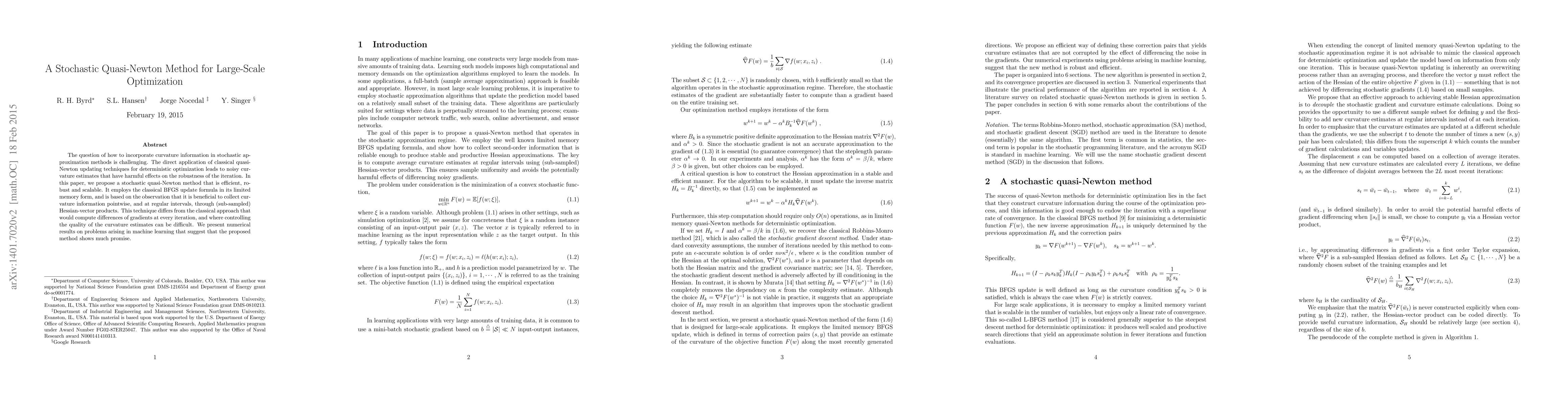 This paper introduces a robust stochastic quasi-Newton method for large-scale optimization that efficiently incorporates curvature information through sub-sampled Hessian-vector products, improving the robustness and scalability of the optimization process. Numerical results demonstrate its effectiveness in machine learning applications.