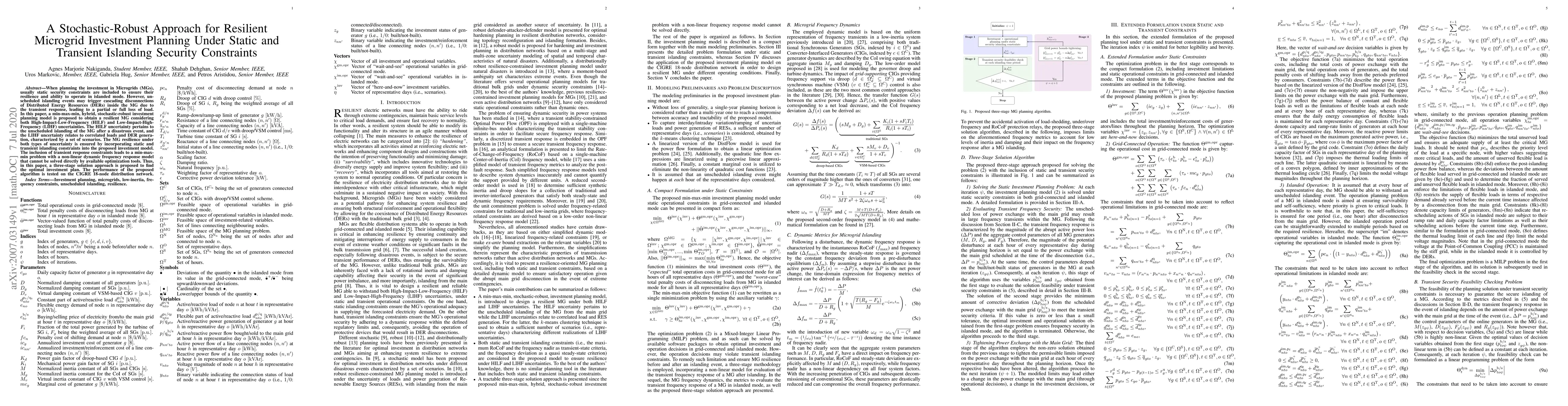 A new investment planning model for microgrids is proposed to ensure resilience under both static and transient islanding security constraints, addressing uncertainty in unscheduled events.