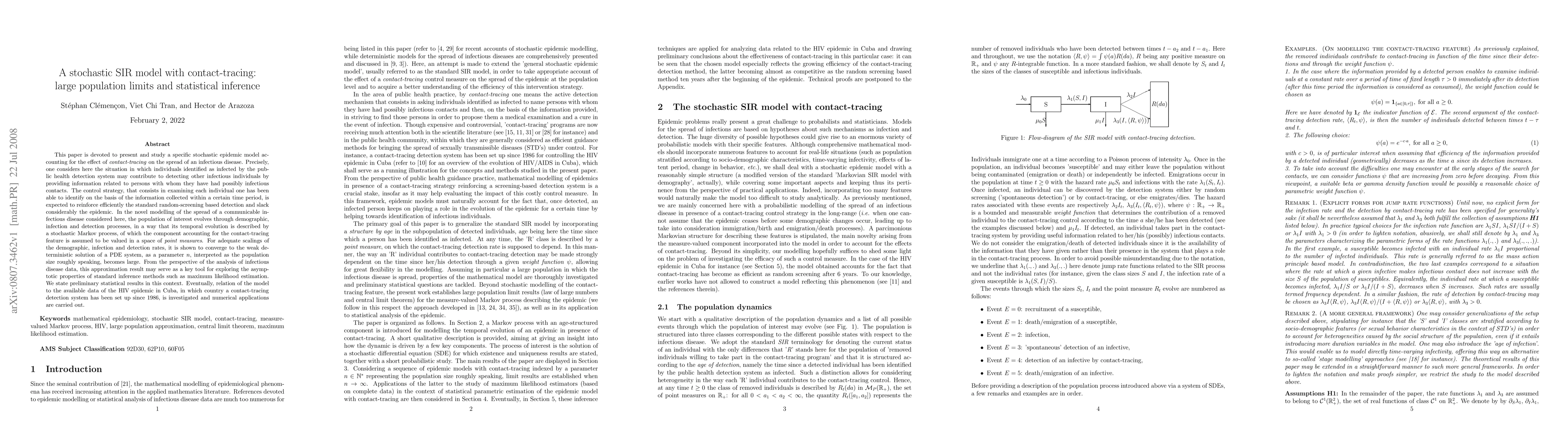 A stochastic SIR model incorporating contact-tracing is developed for studying infectious disease spread, showing convergence to a deterministic solution for large population sizes. Preliminary statistical results from the model are explored in relation to HIV epidemic data in Cuba.