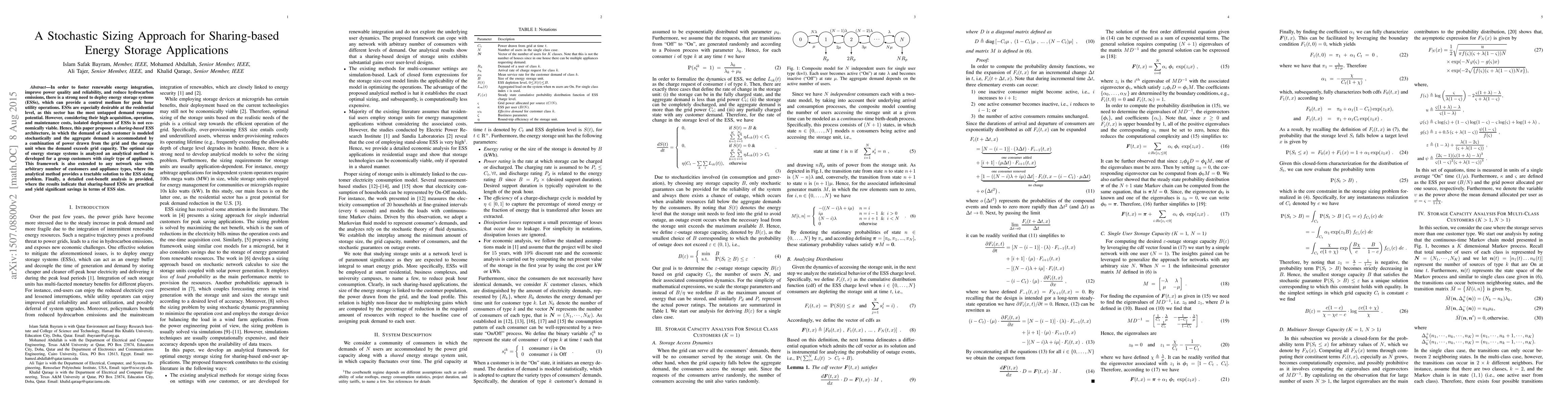 This paper proposes a sharing-based energy storage system (ESS) architecture to economically deploy ESSs at the residential level, leveraging stochastic modeling to optimize ESS size and reduce costs. The developed analytical method extends to any network size and appliance types, demonstrating practical savings in ESS size.