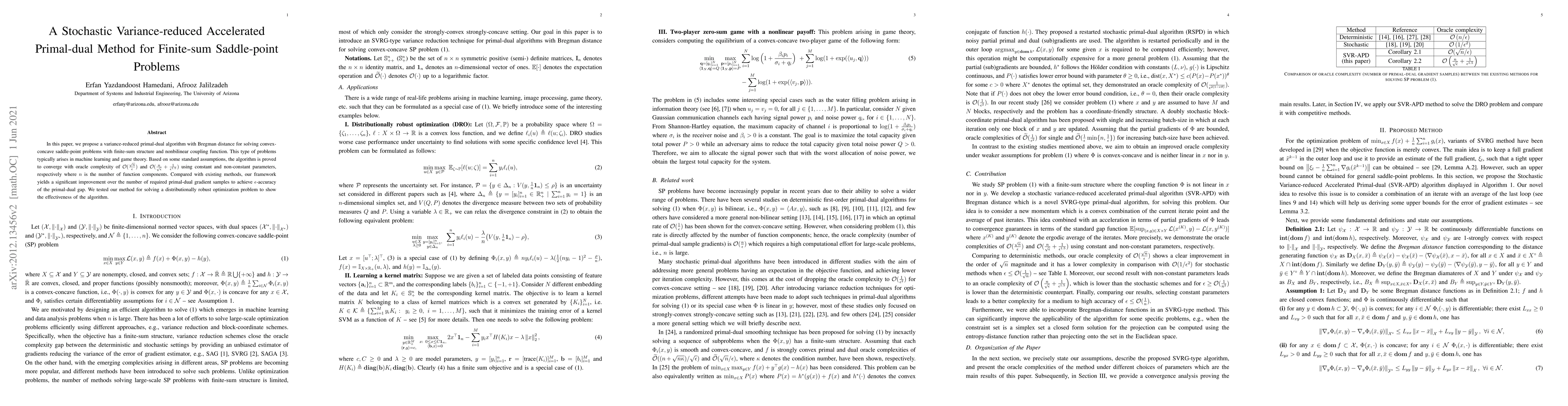 This paper proposes a variance-reduced primal-dual algorithm for solving convex-concave saddle-point problems with finite-sum structure, achieving improved convergence rates and requiring fewer gradient samples compared to existing methods. The algorithm was tested on a distributionally robust optimization problem to demonstrate its effectiveness.