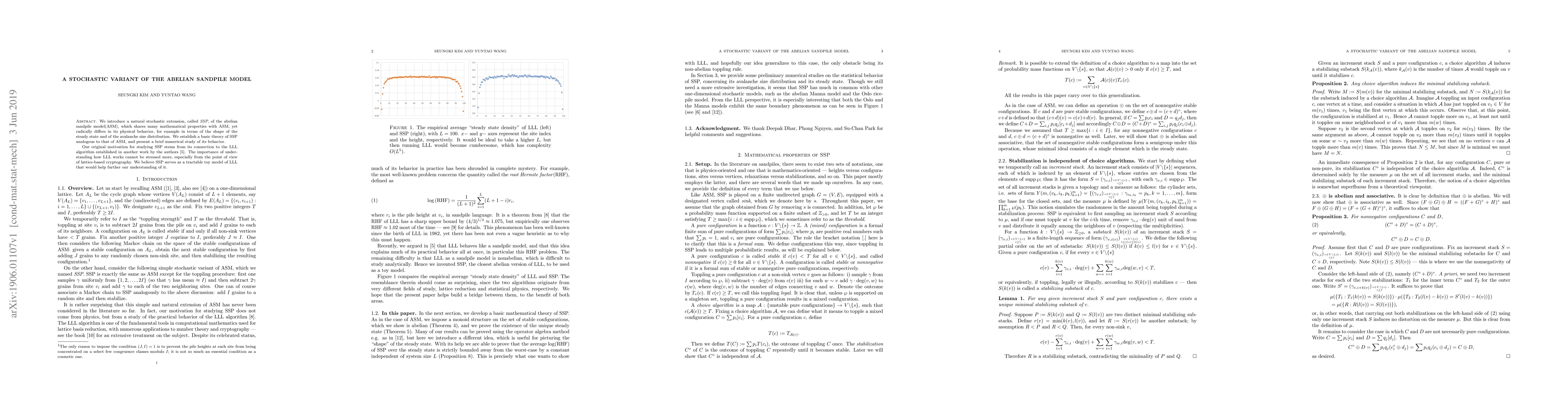This paper introduces a stochastic variant of the abelian sandpile model (SSP) that retains many mathematical properties of ASM but exhibits different physical behaviors, such as distinct steady-state shapes and avalanche size distributions. The authors develop a basic theory for SSP and suggest it as a simplified model to better understand the LLL algorithm, which is crucial for lattice-based cryptography.
