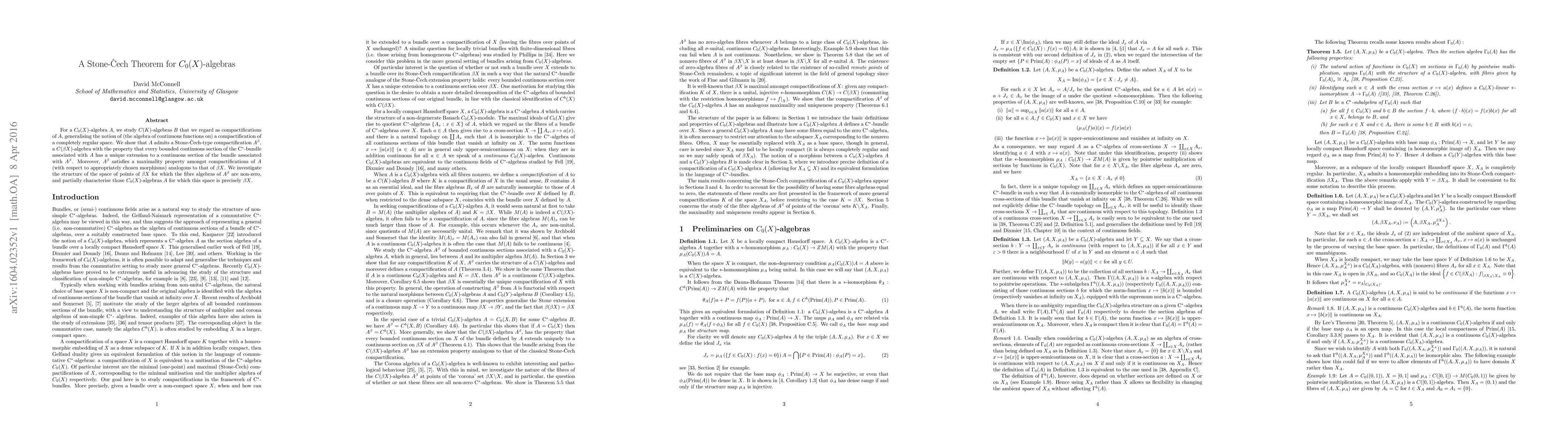 For a $C_0(X)$-algebra $A$, we study $C(K)$-algebras $B$ that we regard as compactifications of $A$, generalising the notion of (the algebra of continuous functions on) a compactification of a completely regular space. We show that $A$ admits a Stone-\v{C}ech-type compactification $A^{\beta}$, a $C(\beta X)$-algebra with the property that every bounded continuous section of the C$^*$-bundle associated with $A$ has a unique extension to a continuous section of the bundle associated with $A^{\beta}$. Moreover, $A^{\beta}$ satisfies a maximality property amongst compactifications of $A$ (with respect to appropriately chosen morphisms) analogous to that of $\beta X$. We investigate the structure of the space of points of $\beta X$ for which the fibre algebras of $A^{\beta}$ are non-zero, and partially characterise those $C_0(X)$-algebras $A$ for which this space is precisely $\beta X$.