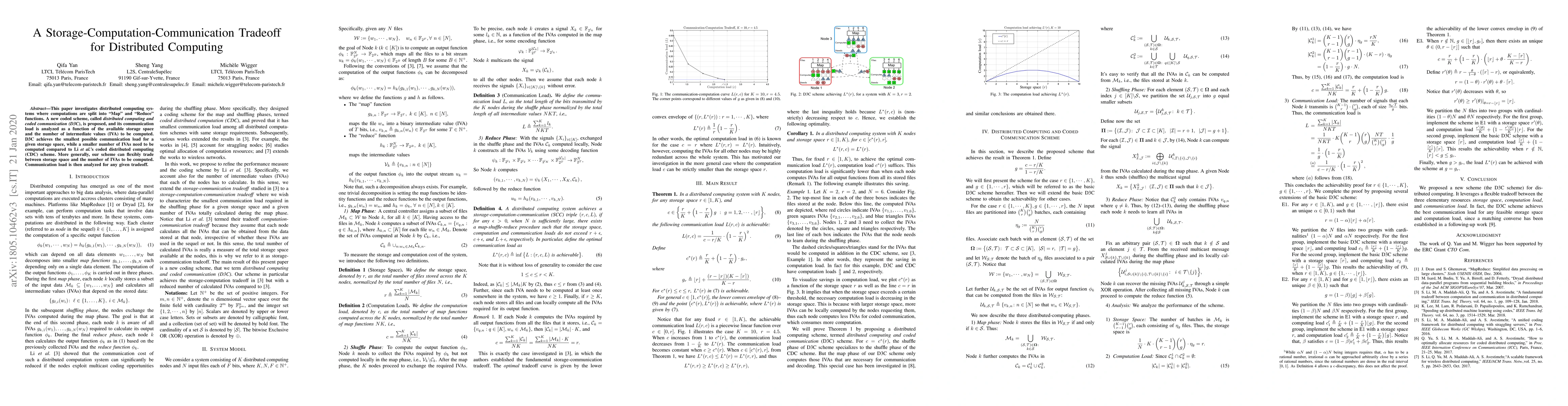 This paper investigates distributed computing systems where computations are split into "Map" and "Reduce" functions. A new coded scheme, called distributed computing and coded communication (D3C), is proposed, and its communication load is analyzed as a function of the available storage space and the number of intermediate values (IVA) to be computed. D3C achieves the smallest possible communication load for a given storage space, while a smaller number of IVAs need to be computed compared to Li et al.'s coded distributed computing (CDC) scheme. More generally, our scheme can flexibly trade between storage space and the number of IVAs to be computed. Communication load is then analyzed for any given tradeoff.