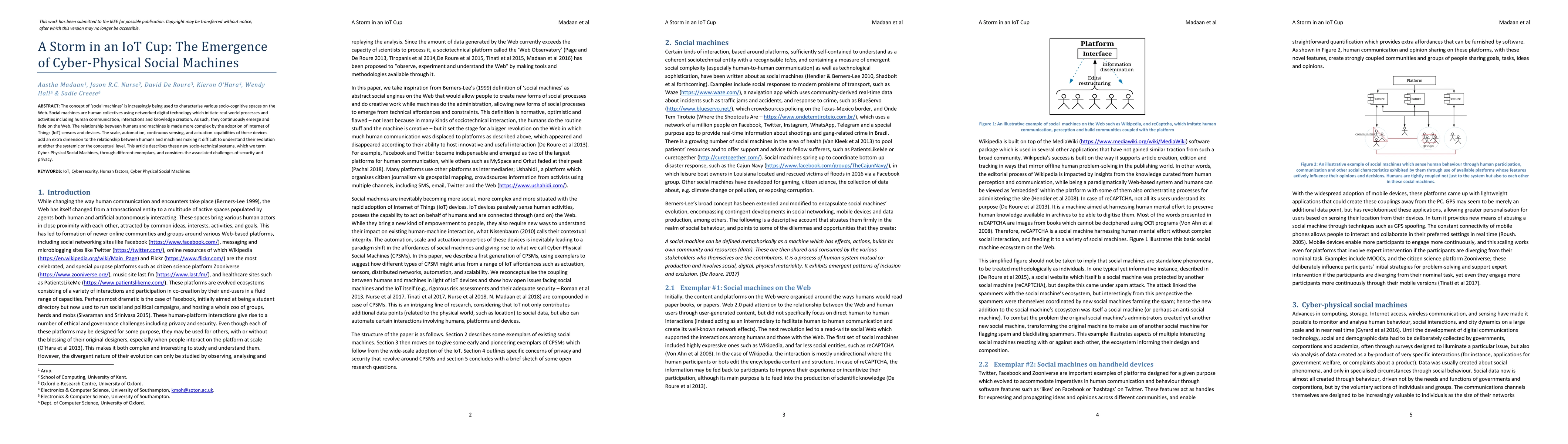 Cyber-Physical Social Machines emerge from IoT adoption, blurring human-machine relationships with complex socio-technical systems. These machines pose security and privacy challenges due to their scale, automation, and continuous sensing capabilities.