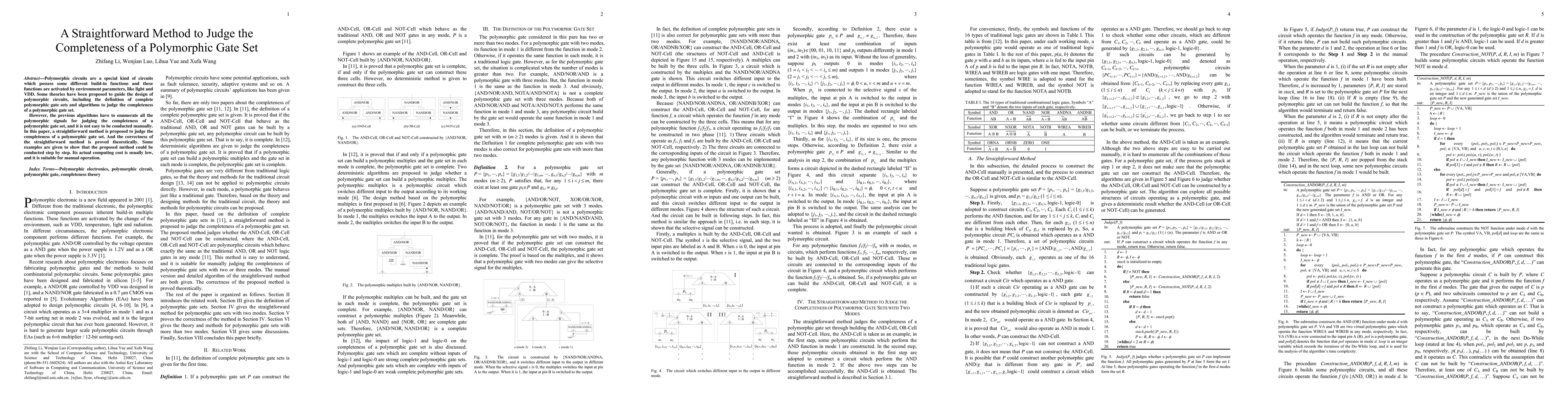 Polymorphic circuits are a special kind of circuits which possess some different build-in functions and these functions are activated by environment parameters, like light and VDD. Some theories have been proposed to guide the design of polymorphic circuits, including the definition of complete polymorphic gate sets and algorithms to judge the completeness of a polymorphic gate set. However, the previous algorithms have to enumerate all the polymorphic signals for judging the completeness of a polymorphic gate set, and it is not easy to be conducted manually. In this paper, a straightforward method is proposed to judge the completeness of a polymorphic gate set. And the correctness of the straightforward method is proved theoretically. Some examples are given to show that the proposed method could be conducted step by step. Its actual computing cost is usually low, and it is suitable for manual operation.