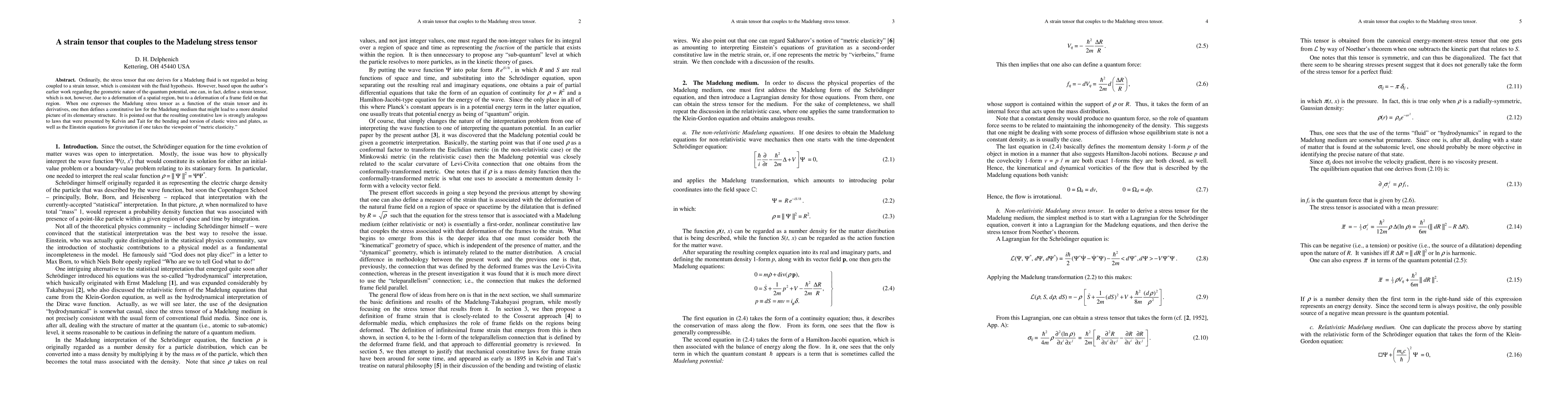 This paper introduces a strain tensor that couples to the Madelung stress tensor, deriving a constitutive law for the Madelung medium. This coupling is based on the deformation of a frame field rather than spatial deformation, and parallels constitutive laws for elastic materials and Einstein's equations for gravitation.
