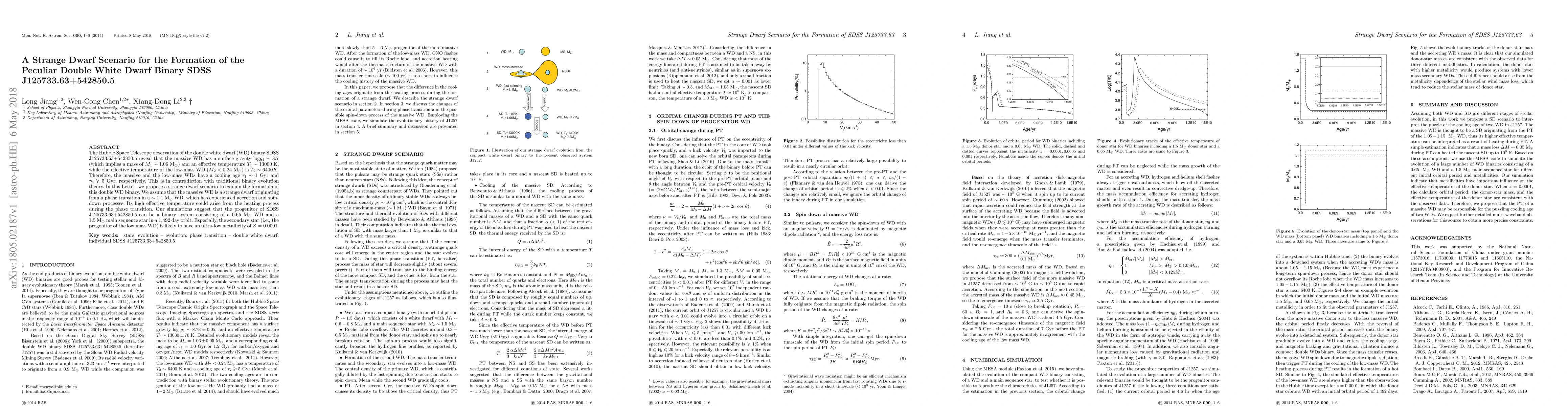 This paper proposes a "strange dwarf" scenario to explain the unusual double white dwarf binary SDSS J125733.63+542850.5, where the massive WD has a high temperature and low mass counterpart, contradicting traditional binary evolution models. The proposed scenario involves a phase transition in a progenitor white dwarf leading to a strange dwarf with high effective temperature.