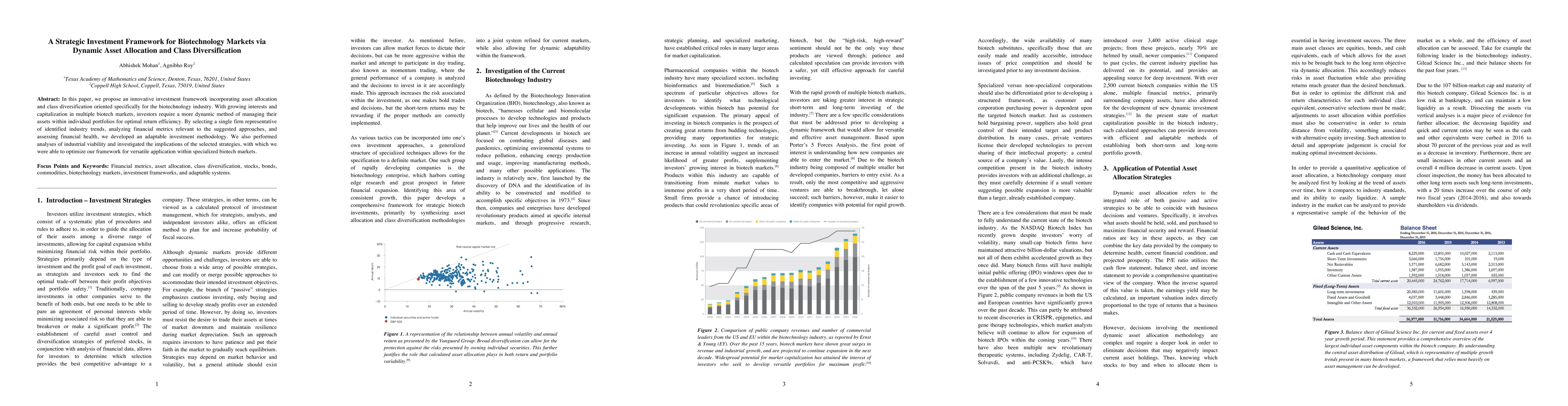 This paper introduces a dynamic investment framework for biotechnology markets that leverages asset allocation and class diversification. The proposed methodology optimizes portfolio management through financial metric analysis and industry trend identification, ensuring efficient return and adaptability across various biotech sectors.