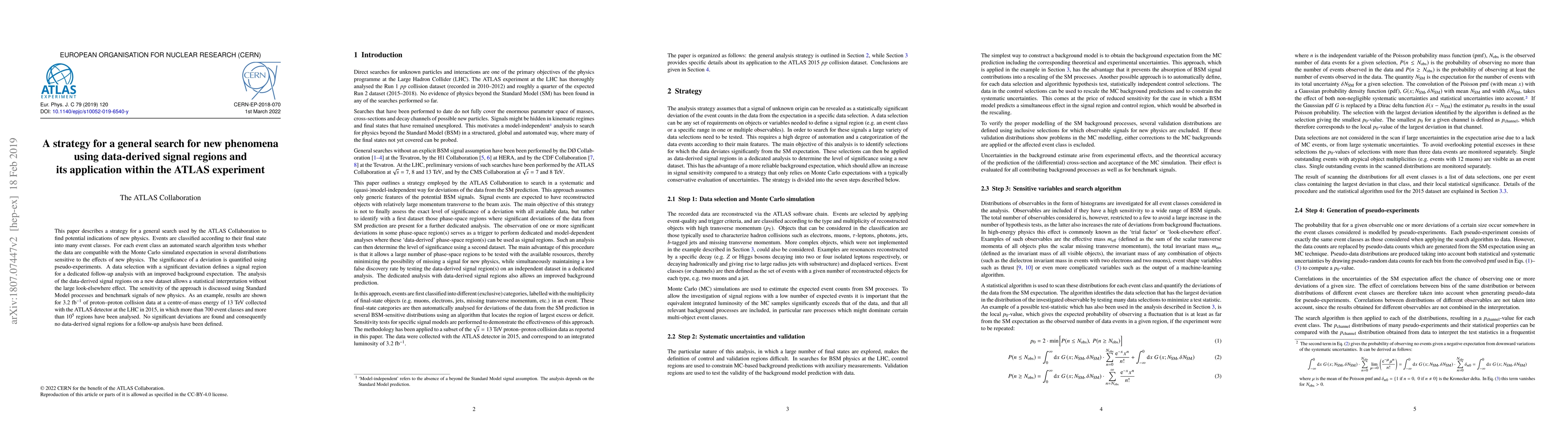 Researchers at ATLAS developed a strategy to find new physics phenomena using data-derived signal regions, testing over 10^5 regions with no significant deviations found.