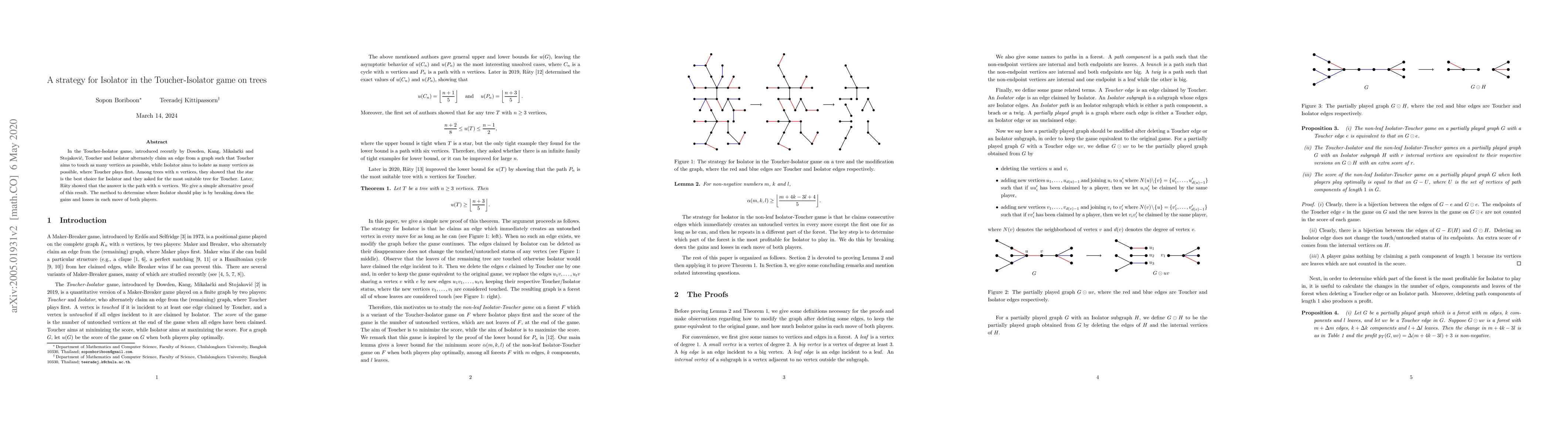 Title: A strategy for Isolator in the Toucher-Isolator game on trees Summary: This paper provides an alternative proof that the optimal tree for Toucher in the Toucher-Isolator game is a path with $n$ vertices, using a method that analyzes the gains and losses for each player's move to determine the best strategy for Isolator.