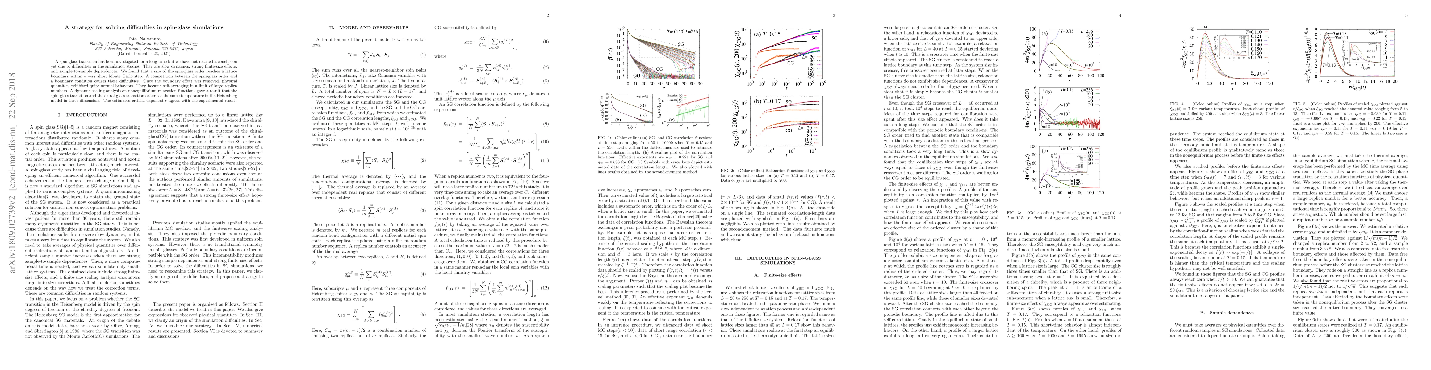A spin-glass transition has been investigated for a long time but we have not yet reached a conclusion due to difficulties in the simulations. They are slow dynamics, strong finite-size effects, and sample-to-sample dependences. We clarified that these difficulties are mainly caused by a competition between the spin-glass order and the boundary conditions. We also found that the spin-glass order grows fast and reaches the lattice boundary within a very short Monte Carlo step. A key to solve the difficulties is to eliminate the boundary effect first. It was made possible by a dynamic scaling analysis on nonequilibrium relaxation functions in a large-size and short-time regime. The observed quantity was also found to be self-averaging in a limit of large replica number. The spin-glass transition and the chiral-glass transition was clarified to occur at the same temperature in the Heisenberg spin-glass model in three dimensions. The estimated critical exponent $\nu$ agrees with the experimental result.