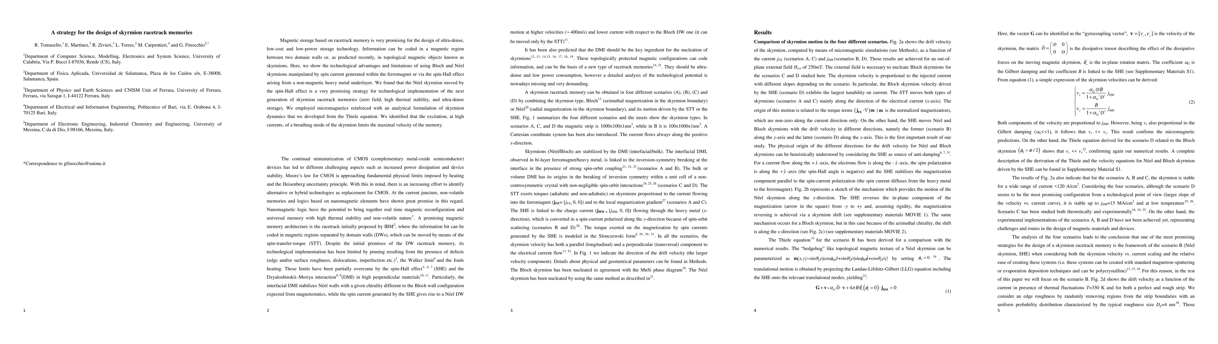 This paper explores the design of skyrmion racetrack memories, highlighting the advantages and limitations of using Bloch and Neel skyrmions. The study finds that Neel skyrmions driven by the spin-Hall effect offer promising technological benefits for next-generation memory systems, though high current excitation can limit their maximum speed.