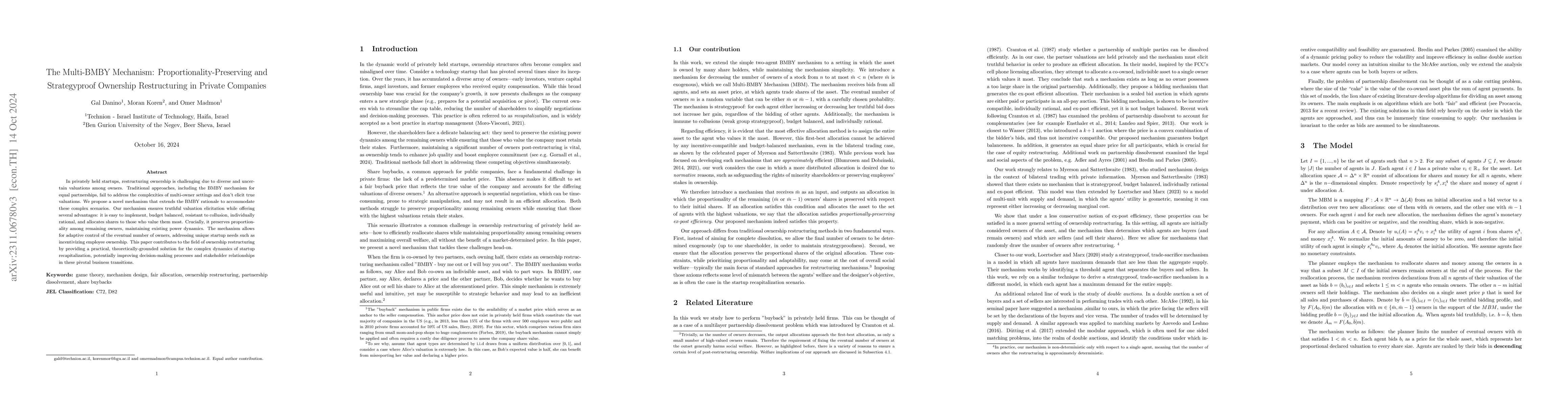 This paper proposes a new mechanism for restructuring ownership in privately held assets among multiple owners, extending beyond the traditional BMBY mechanism for two owners. The new mechanism elicits truthful valuations, is easy to implement, budget balanced, robust to collusion, individually rational, and ex-post efficient.