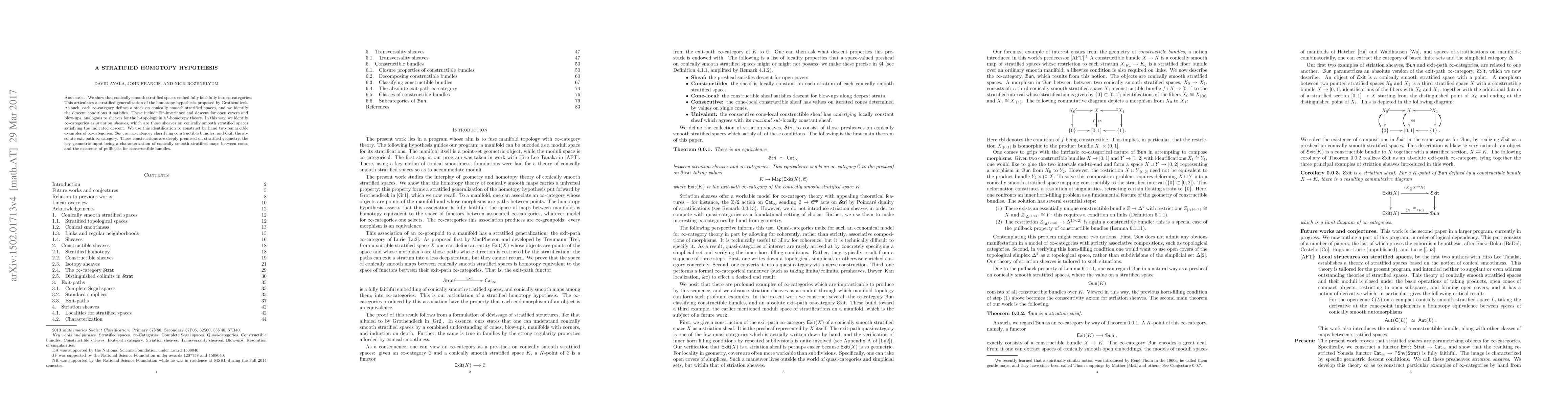 This paper generalizes the homotopy hypothesis to stratified spaces, showing that $\infty$-categories can be seen as striation sheaves on conically smooth stratified spaces, satisfying $\mathbb{R}^1$-invariance and descent conditions. It constructs two notable $\infty$-categories: $\mathcal{B}{\sf un}$ for constructible bundles and $\mathcal{E}{\sf xit}$ for absolute exit-path categories, using stratified geometry principles.