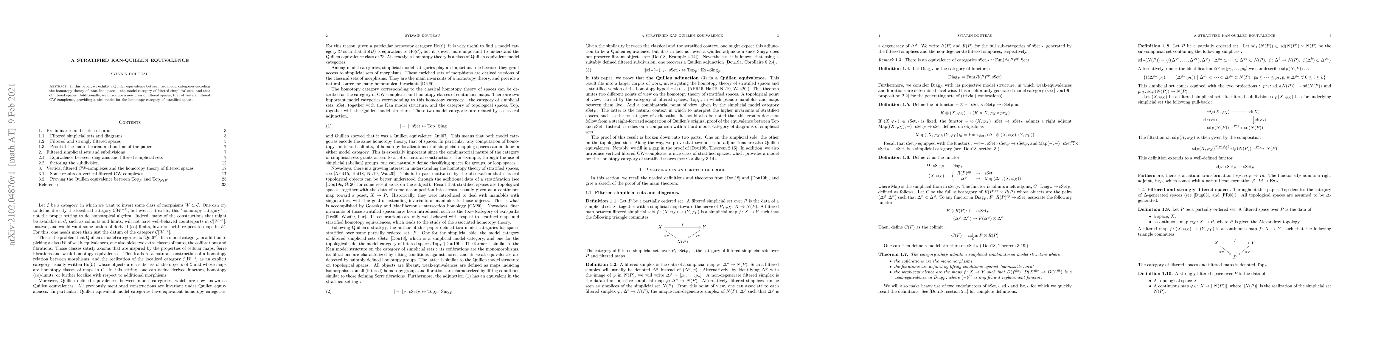 We exhibit a Quillen equivalence between two model categories encoding the homotopy theory of stratified spaces : the model category of filtered simplicial sets, and that of filtered spaces. Additionally, we introduce a new class of filtered spaces, that of vertical filtered CW-complexes, providing a nice model for the homotopy category of stratified spaces.