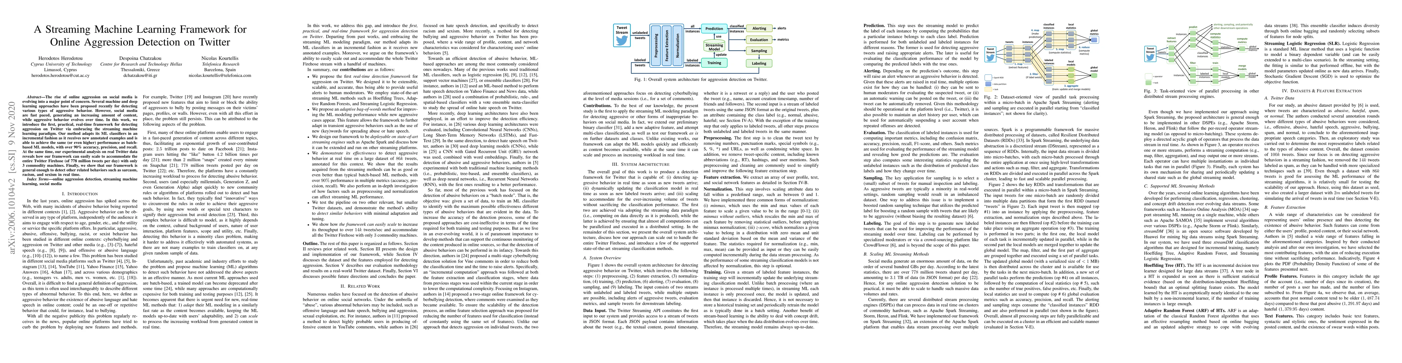 This paper presents a real-time streaming machine learning framework for detecting online aggression on Twitter, achieving over 90% accuracy, precision, and recall. The framework adapts incrementally to new data, scales to handle the entire Twitter Firehose, and is versatile enough to detect related behaviors like sarcasm, racism, and sexism.
