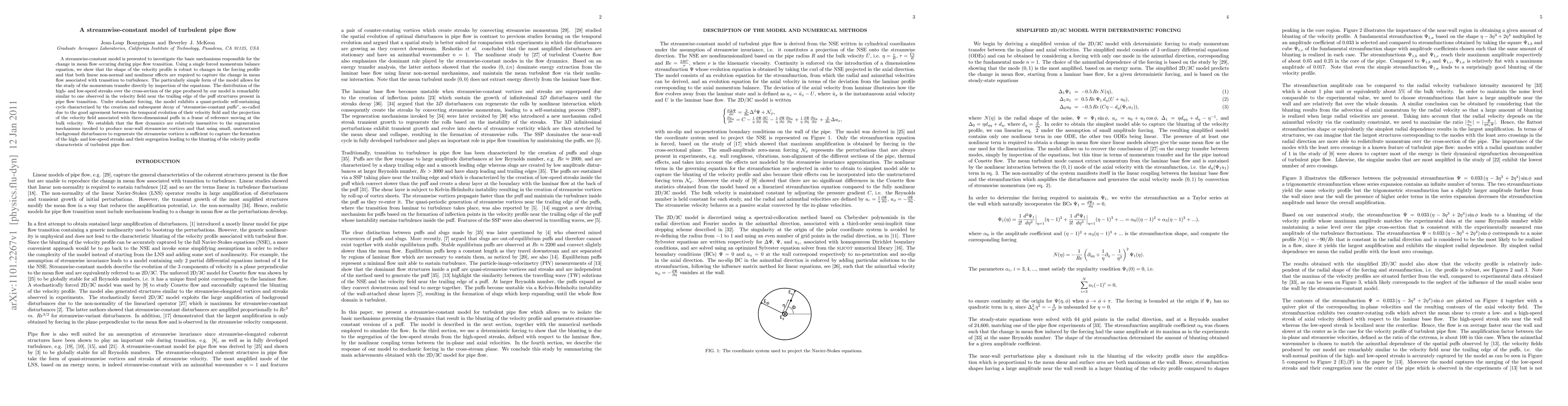 This paper presents a streamwise-constant model to explore the mechanisms behind mean flow changes in pipe flow transition, showing that both linear and nonlinear effects are necessary for capturing these changes. The model's simplicity allows for direct examination of momentum transfer, revealing streaky structures similar to those observed in transitional pipe flows.