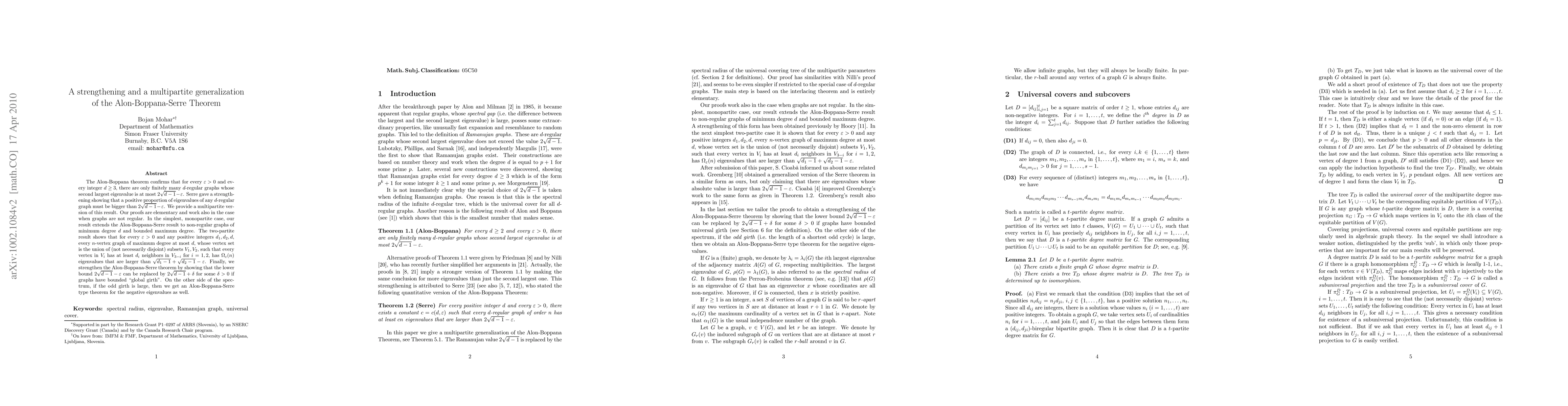 This paper generalizes the Alon-Boppana-Serre Theorem to multipartite graphs, showing that a positive proportion of eigenvalues of $d$-regular graphs exceed $2\sqrt{d-1}-\epsilon$. It extends the result to non-regular graphs with minimum degree $d$ and provides a multipartite version with specific eigenvalue bounds for graphs divided into two sets with prescribed inter-set connectivity.