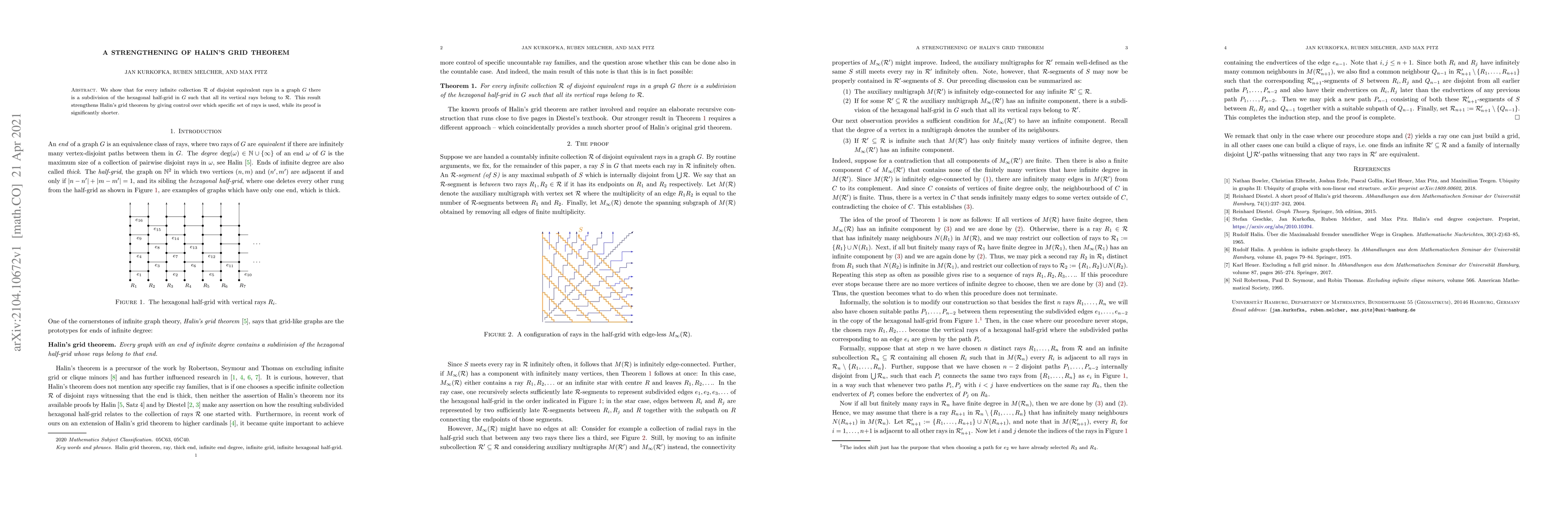 Researchers strengthen Halin's grid theorem by showing that a specific subdivision of the hexagonal half-grid can be found, ensuring vertical rays from an infinite collection belong to this subset.