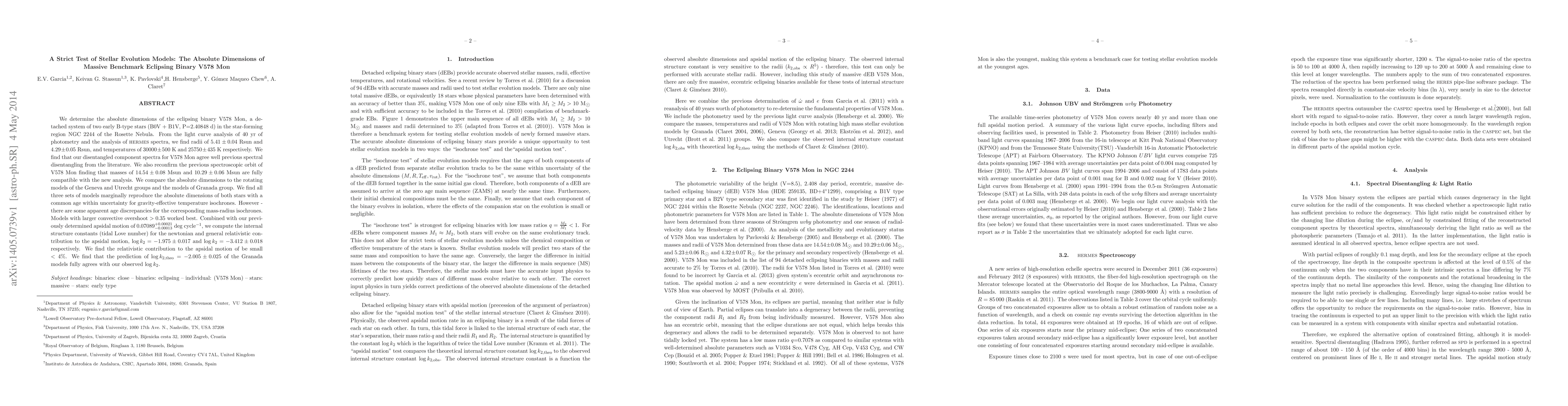 Researchers measured the absolute dimensions of binary star V578 Mon, finding radii of 5.41 Rsun and 4.29 Rsun for two early B-type stars. Their analysis agrees with previous findings and provides new insights into stellar evolution models.