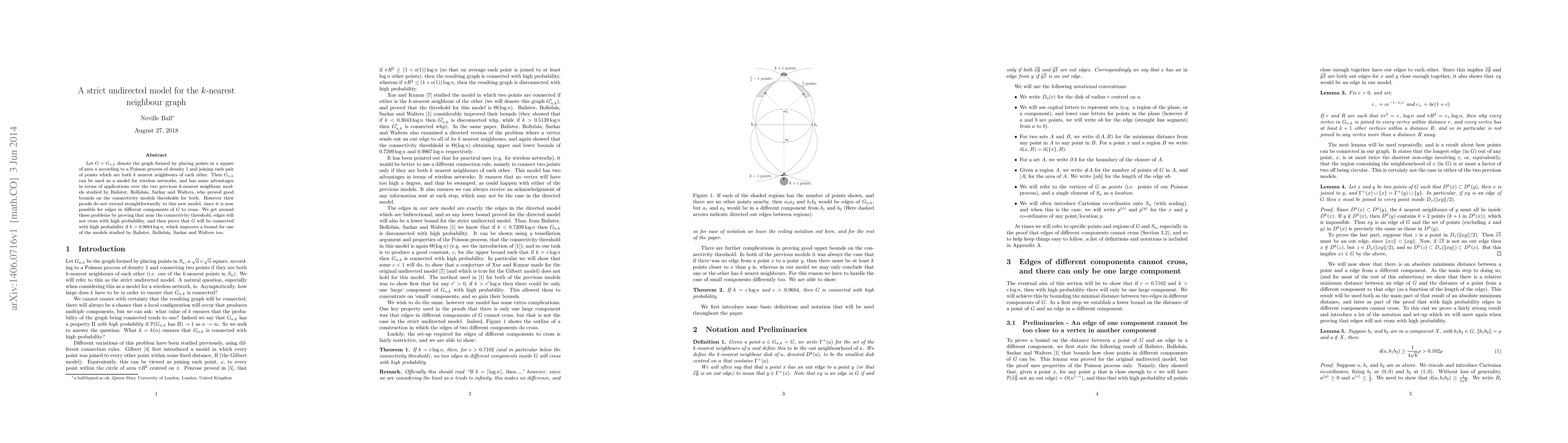 Let $G=G_{n,k}$ denote the graph formed by placing points in a square of area $n$ according to a Poisson process of density 1 and joining each pair of points which are both $k$ nearest neighbours of each other. Then $G_{n,k}$ can be used as a model for wireless networks, and has some advantages in terms of applications over the two previous $k$-nearest neighbour models studied by Balister, Bollob\'{a}s, Sarkar and Walters, who proved good bounds on the connectivity models thresholds for both. However their proofs do not extend straightforwardly to this new model, since it is now possible for edges in different components of $G$ to cross. We get around these problems by proving that near the connectivity threshold, edges will not cross with high probability, and then prove that $G$ will be connected with high probability if $k>0.9684\log n$, which improves a bound for one of the models studied by Balister, Bollob\'{a}s, Sarkar and Walters too.