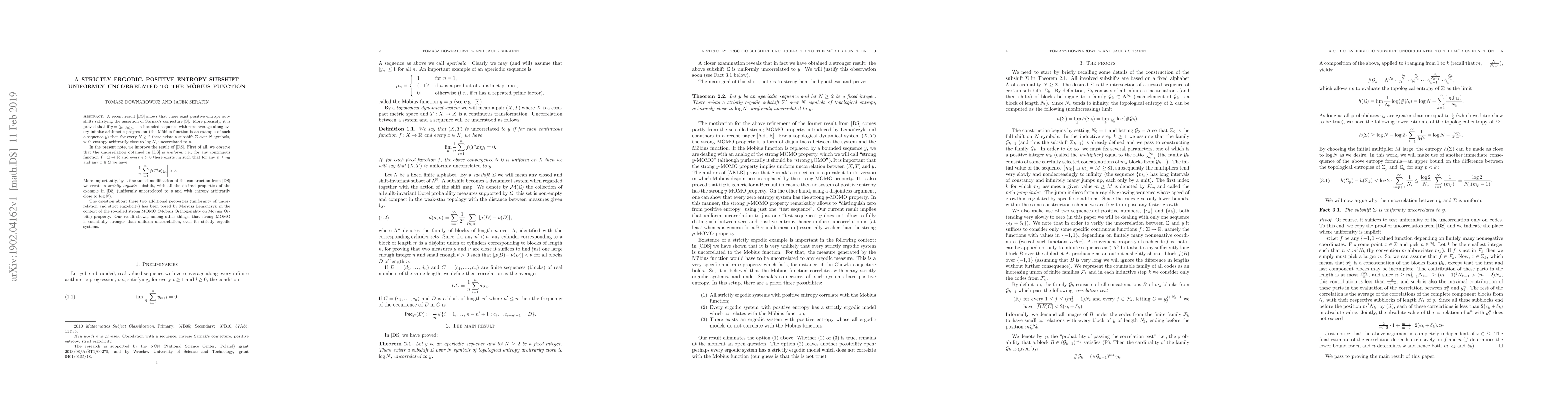 A recent result of Downarowicz and Serafin (DS) shows that there exist positive entropy subshifts satisfying the assertion of Sarnak's conjecture. More precisely, it is proved that if $y=(y_n)_{n\ge 1}$ is a bounded sequence with zero average along every infinite arithmetic progression (the M\"obius function is an example of such a \sq\ $y$) then for every $N\ge 2$ there exists a subshift $\Sigma$ over $N$ symbols, with entropy arbitrarily close to $\log N$, uncorrelated to $y$. In the present note, we improve the result of (DS). First of all, we observe that the uncorrelation obtained in (DS) is \emph{uniform}, i.e., for any continuous function $f:\Sigma\to {\mathbb R}$ and every $\epsilon>0$ there exists $n_0$ such that for any $n\ge n_0$ and any $x\in\Sigma$ we have $$ \left|\frac1n\sum_{i=1}^{n}f(T^ix)\,y_i\right|<\epsilon. $$ More importantly, by a fine-tuned modification of the construction from (DS) we create a \emph{strictly ergodic} subshift, with all the desired properties of the example in (DS) (uniformly uncorrelated to $y$ and with entropy arbitrarily close to $\log N$). The question about these two additional properties (uniformity of uncorrelation and strict ergodicity) has been posed by Mariusz Lemanczyk in the context of the so-called strong MOMO (M\"obius Orthogonality on Moving Orbits) property. Our result shows, among other things, that strong MOMO is essentially stronger than uniform uncorrelation, even for strictly ergodic systems.