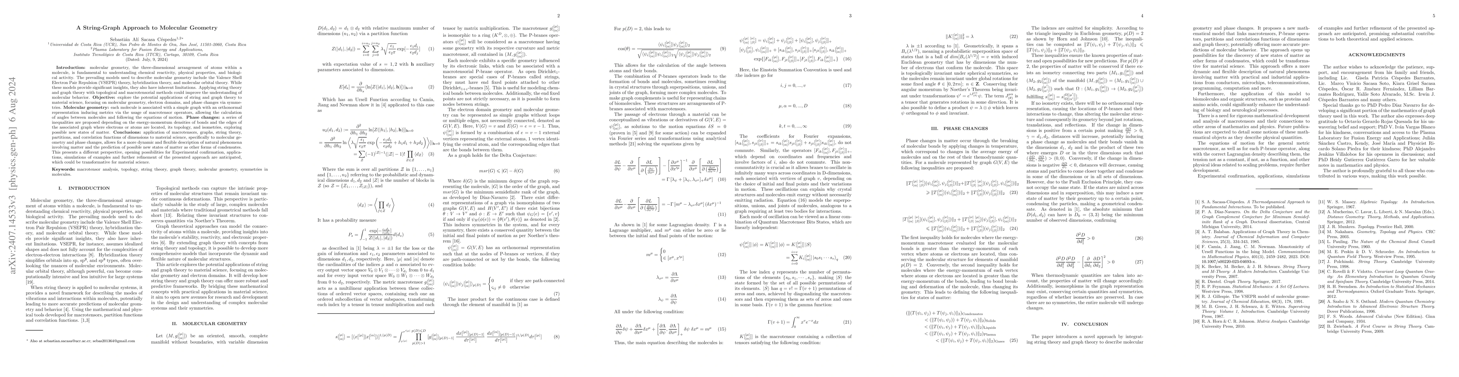 This paper investigates the application of string theory and graph theory to enhance the understanding of molecular geometry and phase changes in material science. It proposes a novel approach using macrotensors, graph representations, and topological methods to describe electron domains and predict new states of matter.