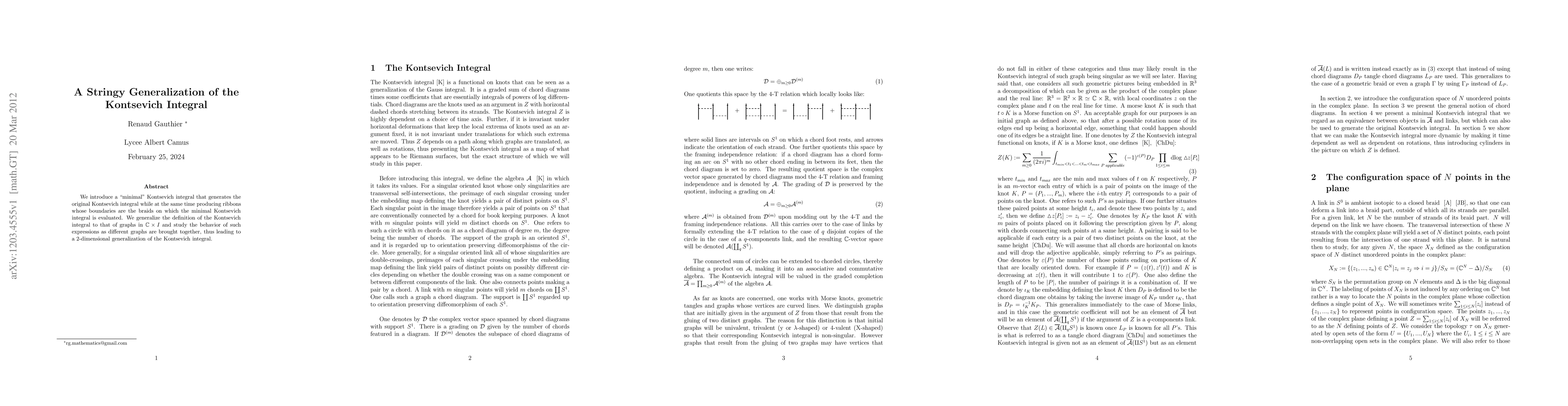 This paper presents a "minimal" version of the Kontsevich integral that extends the original integral to three-dimensional graphs, generating ribbons whose boundaries are braids, and introduces a 2-dimensional generalization of the Kontsevich integral by studying the behavior of these graphs as they interact.
