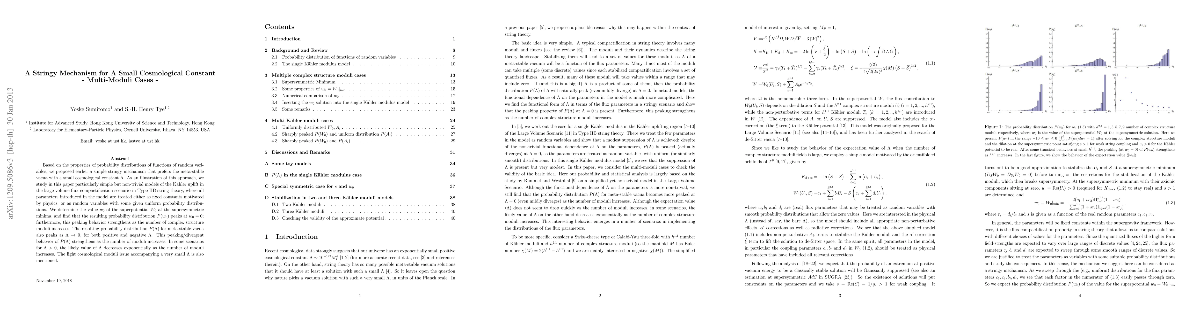 Based on the properties of probability distributions of functions of random variables, we proposed earlier a simple stringy mechanism that prefers the meta-stable vacua with a small cosmological constant \Lambda. As an illustration of this approach, we study in this paper particularly simple but non-trivial models of the K\"ahler uplift in the large volume flux compactification scenario in Type IIB string theory, where all parameters introduced in the model are treated either as fixed constants motivated by physics, or as random variables with some given uniform probability distributions. We determine the value w_0 of the superpotential W_0 at the supersymmetric minima, and find that the resulting probability distribution P(w_0) peaks at w_0=0; furthermore, this peaking behavior strengthens as the number of complex structure moduli increases. The resulting probability distribution P(\Lambda) for meta-stable vacua also peaks as \Lambda -> 0, for both positive and negative \Lambda. This peaking/divergent behavior of P(\Lambda) strengthens as the number of moduli increases. In some scenarios for \Lambda > 0, the likely value of \Lambda decreases exponentially as the number of moduli increases. The light cosmological moduli issue accompanying a very small \Lambda is also mentioned.