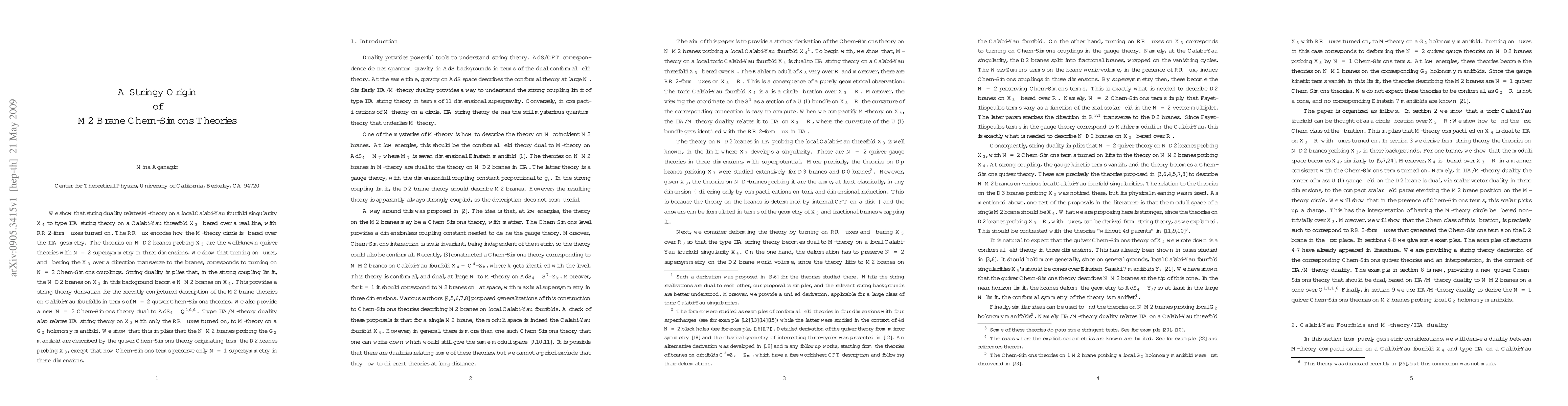 This paper demonstrates the string duality linking M-theory on a Calabi-Yau fourfold to type IIA string theory on a Calabi-Yau threefold with RR fluxes, deriving M2 brane Chern-Simons theories from D2 brane quiver theories in the strong coupling limit. It also presents an N=2 Chern-Simons theory dual to AdS_4 x Q^{1,1,1} and connects IIA string theory with G2 holonomy to M-theory on G2 manifolds via N M2 branes.