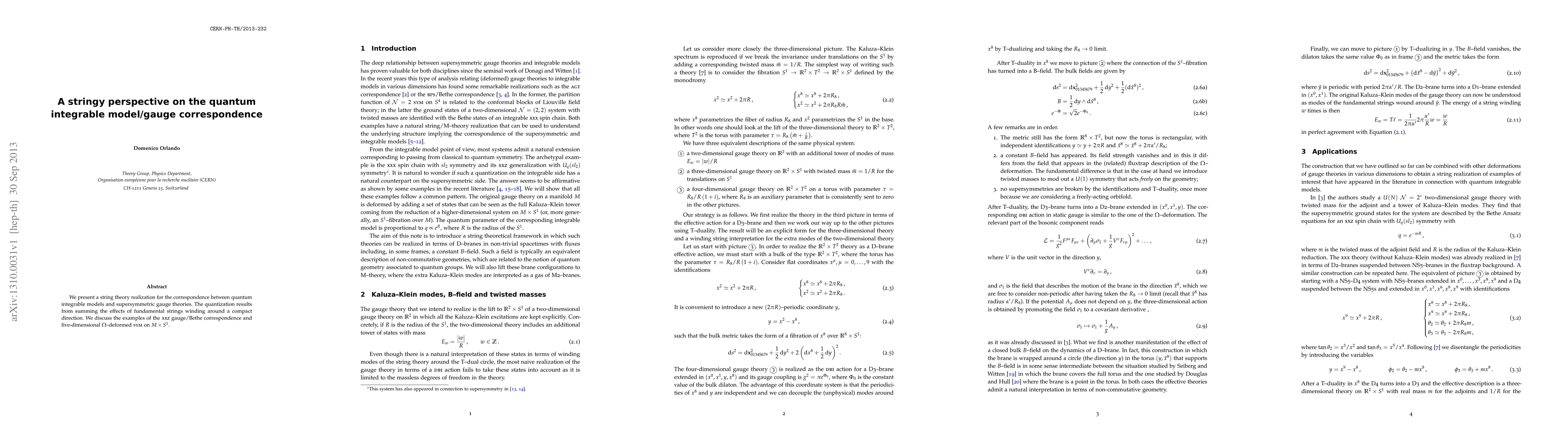 Summary: This paper explores a string theory framework for the quantum integrable model/gauge correspondence, demonstrating the quantization via fundamental strings winding around a compact direction, with specific examples including the XXZ gauge/Bethe correspondence and five-dimensional Ω-deformed SYM on M x S^1.