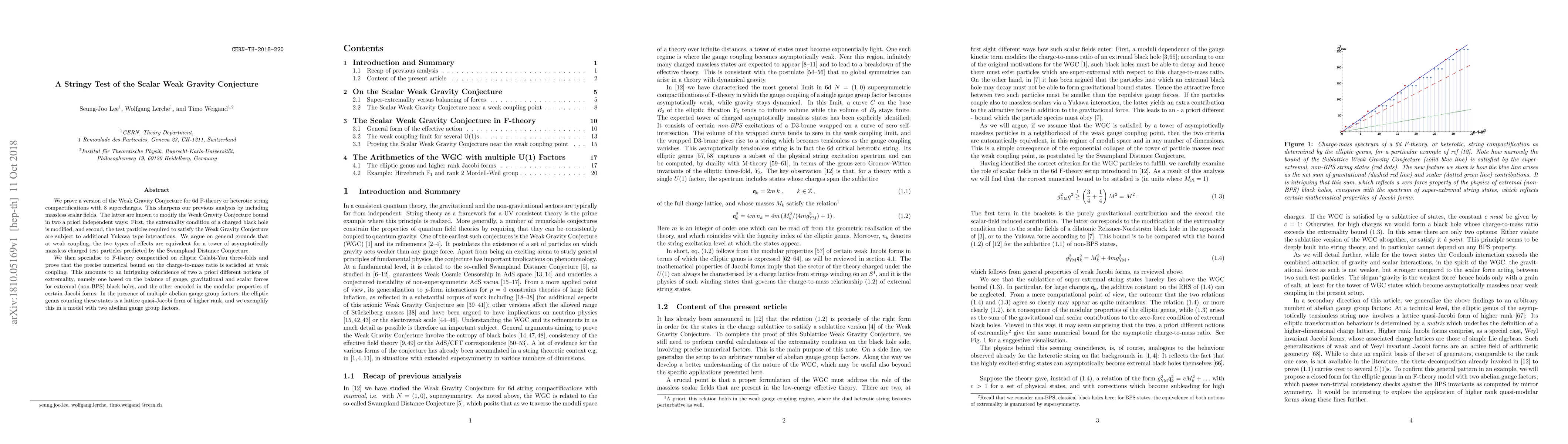 We prove a version of the Weak Gravity Conjecture for 6d F-theory or heterotic string compactifications with 8 supercharges. This sharpens our previous analysis by including massless scalar fields. The latter are known to modify the Weak Gravity Conjecture bound in two a priori independent ways: First, the extremality condition of a charged black hole is modified, and second, the test particles required to satisfy the Weak Gravity Conjecture are subject to additional Yukawa type interactions. We argue on general grounds that at weak coupling, the two types of effects are equivalent for a tower of asymptotically massless charged test particles predicted by the Swampland Distance Conjecture. We then specialise to F-theory compactified on elliptic Calabi-Yau three-folds and prove that the precise numerical bound on the charge-to-mass ratio is satisfied at weak coupling. This amounts to an intriguing coincidence of two a priori different notions of extremality, namely one based on the balance of gauge, gravitational and scalar forces for extremal (non-BPS) black holes, and the other encoded in the modular properties of certain Jacobi forms. In the presence of multiple abelian gauge group factors, the elliptic genus counting these states is a lattice quasi-Jacobi form of higher rank, and we exemplify this in a model with two abelian gauge group factors.