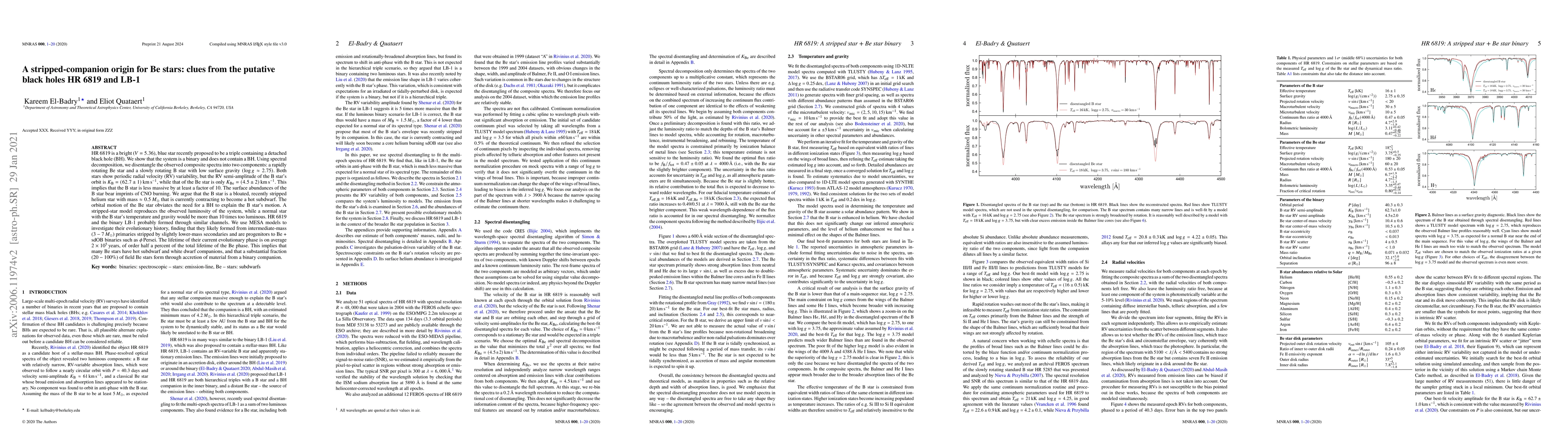 HR 6819 is revealed to be a binary system consisting of a Be star and a low-mass B star, rather than a triple system with a black hole. The B star is a stripped helium star, currently contracting to become a hot subdwarf, providing insight into the formation of Be stars through binary interactions.