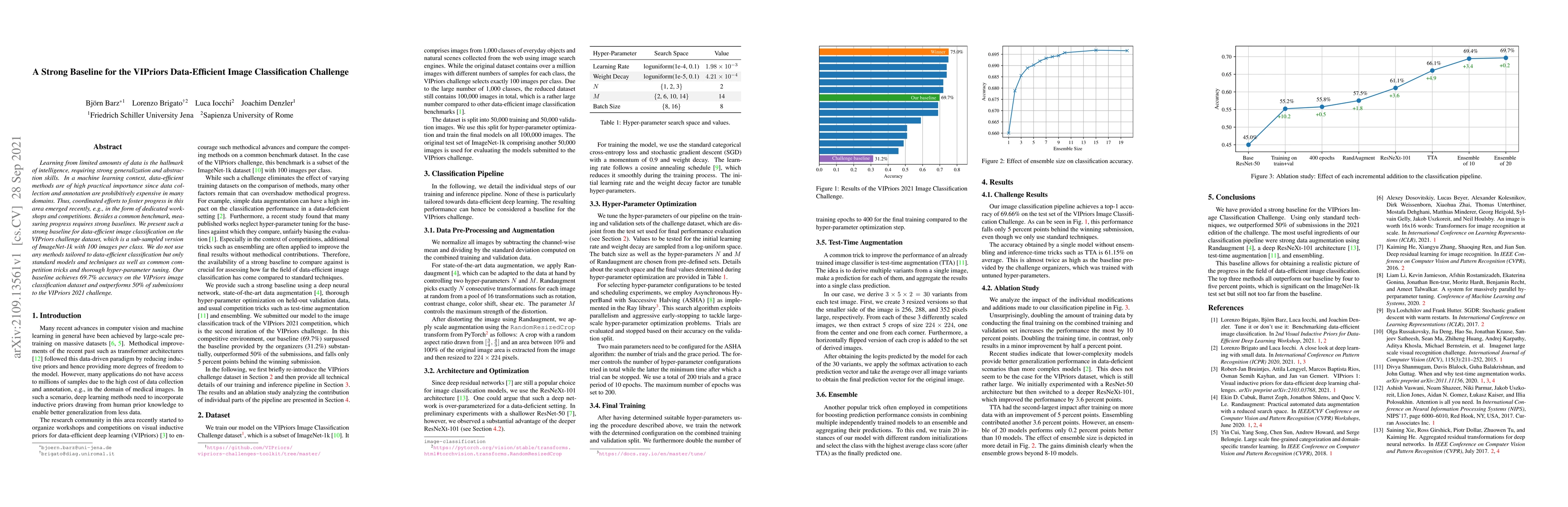 Learning from limited amounts of data is the hallmark of intelligence, requiring strong generalization and abstraction skills. In a machine learning context, data-efficient methods are of high practical importance since data collection and annotation are prohibitively expensive in many domains. Thus, coordinated efforts to foster progress in this area emerged recently, e.g., in the form of dedicated workshops and competitions. Besides a common benchmark, measuring progress requires strong baselines. We present such a strong baseline for data-efficient image classification on the VIPriors challenge dataset, which is a sub-sampled version of ImageNet-1k with 100 images per class. We do not use any methods tailored to data-efficient classification but only standard models and techniques as well as common competition tricks and thorough hyper-parameter tuning. Our baseline achieves 69.7% accuracy on the VIPriors image classification dataset and outperforms 50% of submissions to the VIPriors 2021 challenge.