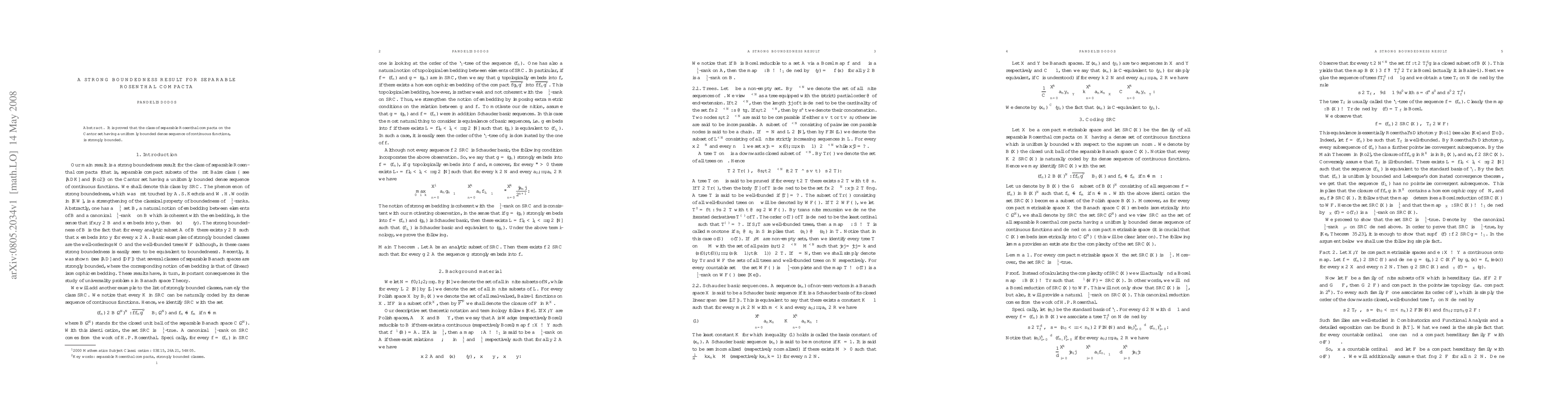 Summary: The paper establishes that separable Rosenthal compacta on the Cantor set, which possess a uniformly bounded dense sequence of continuous functions, exhibit strong boundedness. This result contributes to the understanding of function spaces on compact sets.