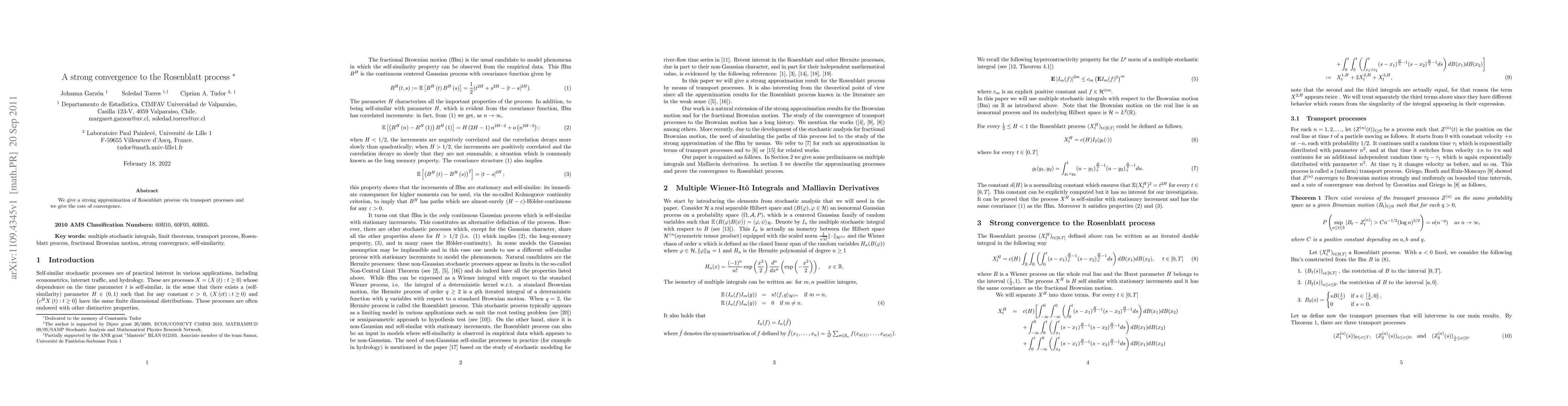 Summary: This paper presents a strong approximation of the Rosenblatt process using transport processes, along with a detailed analysis of the convergence rate.