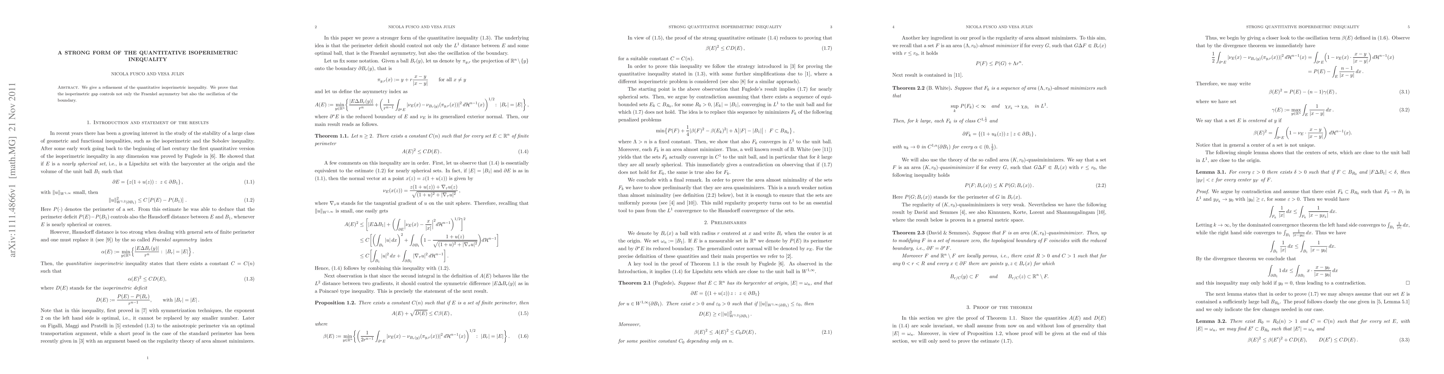 Summary: This paper refines the quantitative isoperimetric inequality, demonstrating that the isoperimetric gap influences both the Fraenkel asymmetry and the oscillation of the boundary, providing a more nuanced understanding of geometric properties.