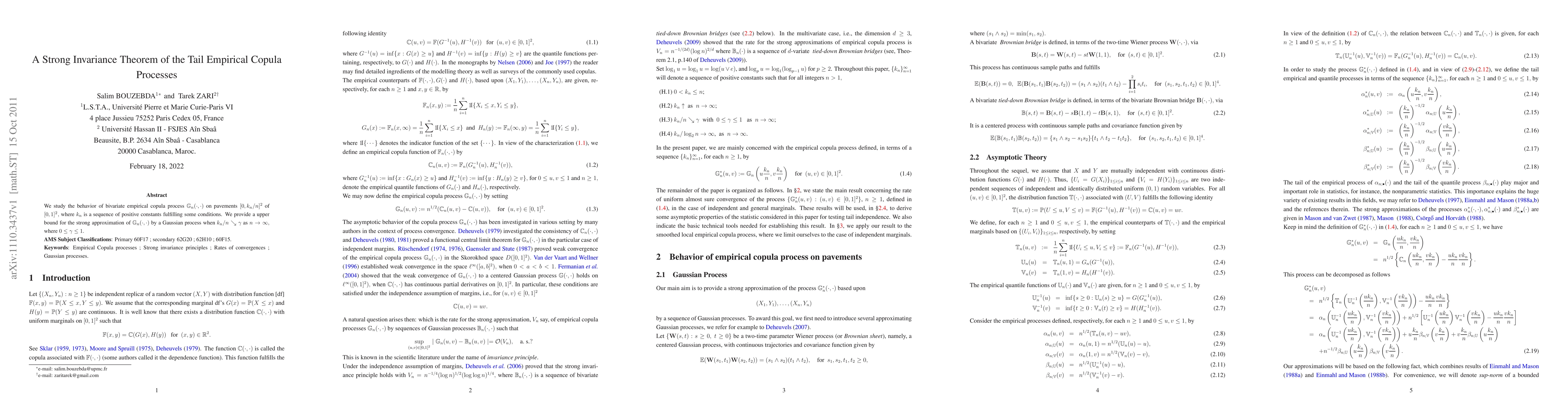 We study the behavior of bivariate empirical copula process $\mathbb{G}_n(\cdot,\cdot)$ on pavements $[0,k_n/n]^2$ of $[0,1]^2,$ where $k_n$ is a sequence of positive constants fulfilling some conditions. We provide a upper bound for the strong approximation of $\mathbb{G}_n(\cdot,\cdot)$ by a Gaussian process when $k_n/n \searrow \gamma$ as $n\rightarrow \infty,$ where $0 \leq \gamma \leq 1.$