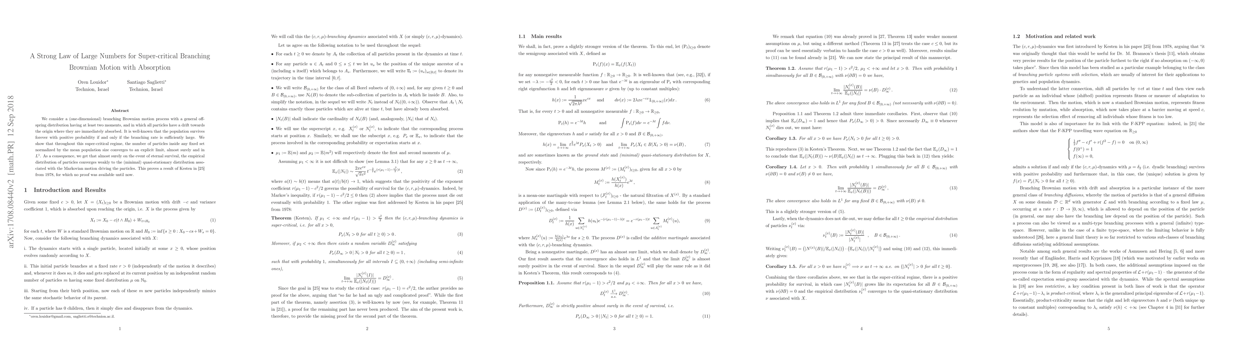 This paper proves a long-standing result in branching Brownian motion theory: almost surely, the distribution of particles inside a set converges to a quasi-stationary limit as the population grows, even in the super-critical regime where survival is possible.