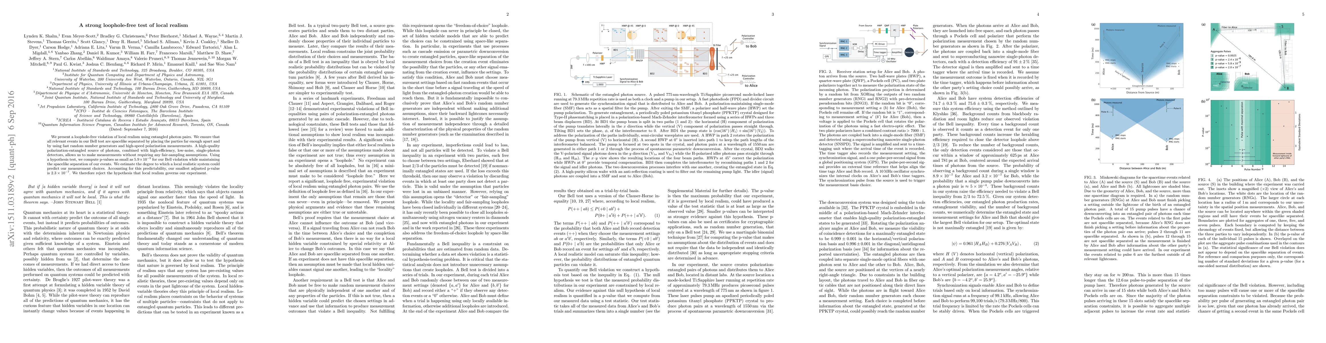 This paper presents a loophole-free violation of local realism using entangled photon pairs, achieving a Bell test with spacelike separation and high-efficiency detectors, resulting in a small p-value of $5.9\times 10^{-9}$ and rejecting the hypothesis of local realism.