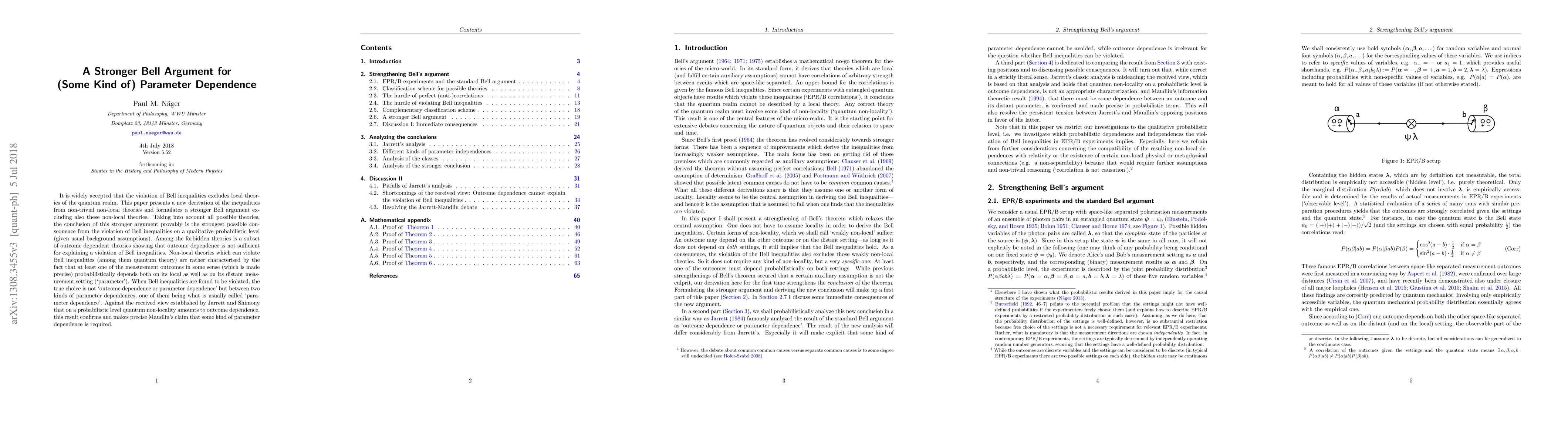 This paper presents a stronger Bell argument that excludes not only local but also non-local theories, emphasizing that parameter dependence is essential for explaining violations of Bell inequalities, rather than mere outcome dependence. It concludes that quantum non-locality is characterized by a specific type of parameter dependence.